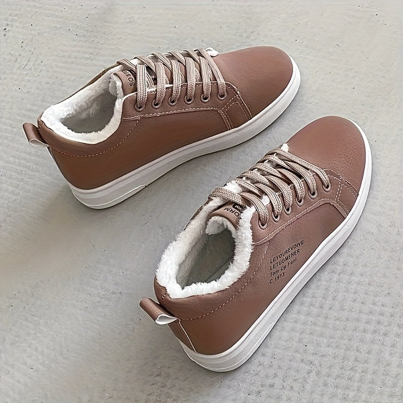 Women's Winter Lace-Up Snow Boots with Fleece Lining, Brown, Slip-Resistant Rubber Sole
