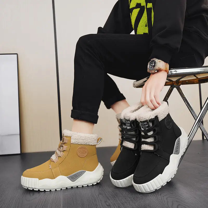 Women’s Winter Snow Boots Beige Fleece-Lined Chunky Sole Casual