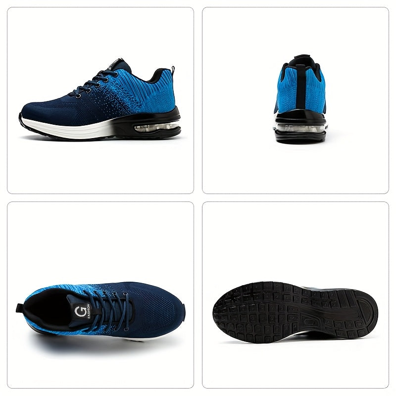 Women Steel Toe Safety Shoes Breathable Fabric Anti-Puncture Work Sneakers Blue Black