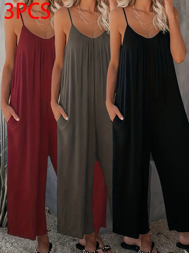 Women Summer Casual Strapless Jumpsuits Black Beige Red Pockets Stretchy
