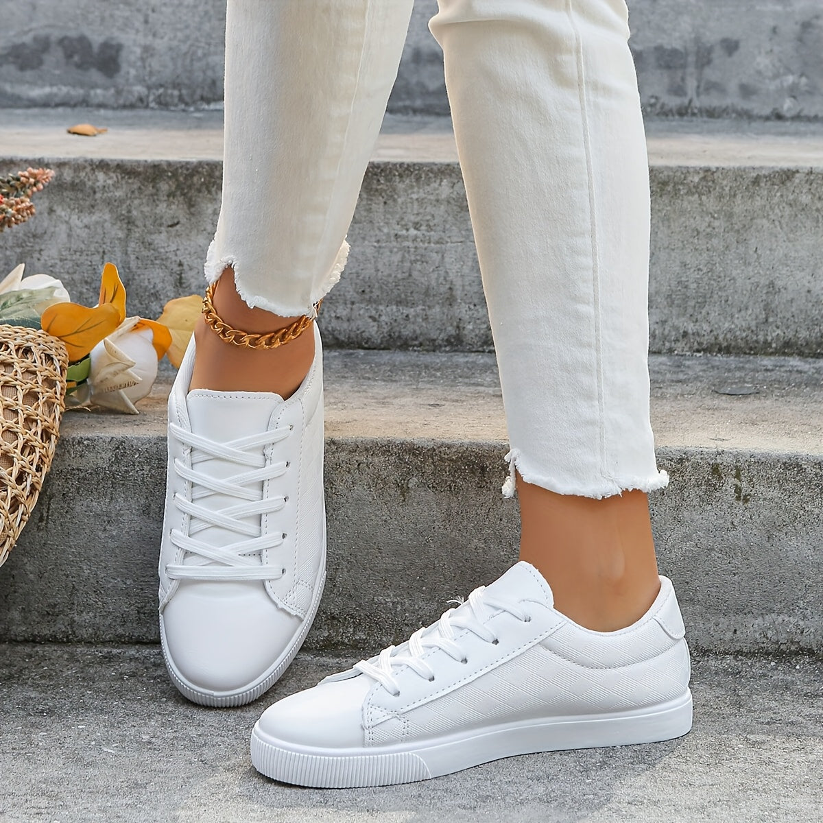 Women White Casual Sneakers Rubber Sole Mesh Upper All-Season Comfort