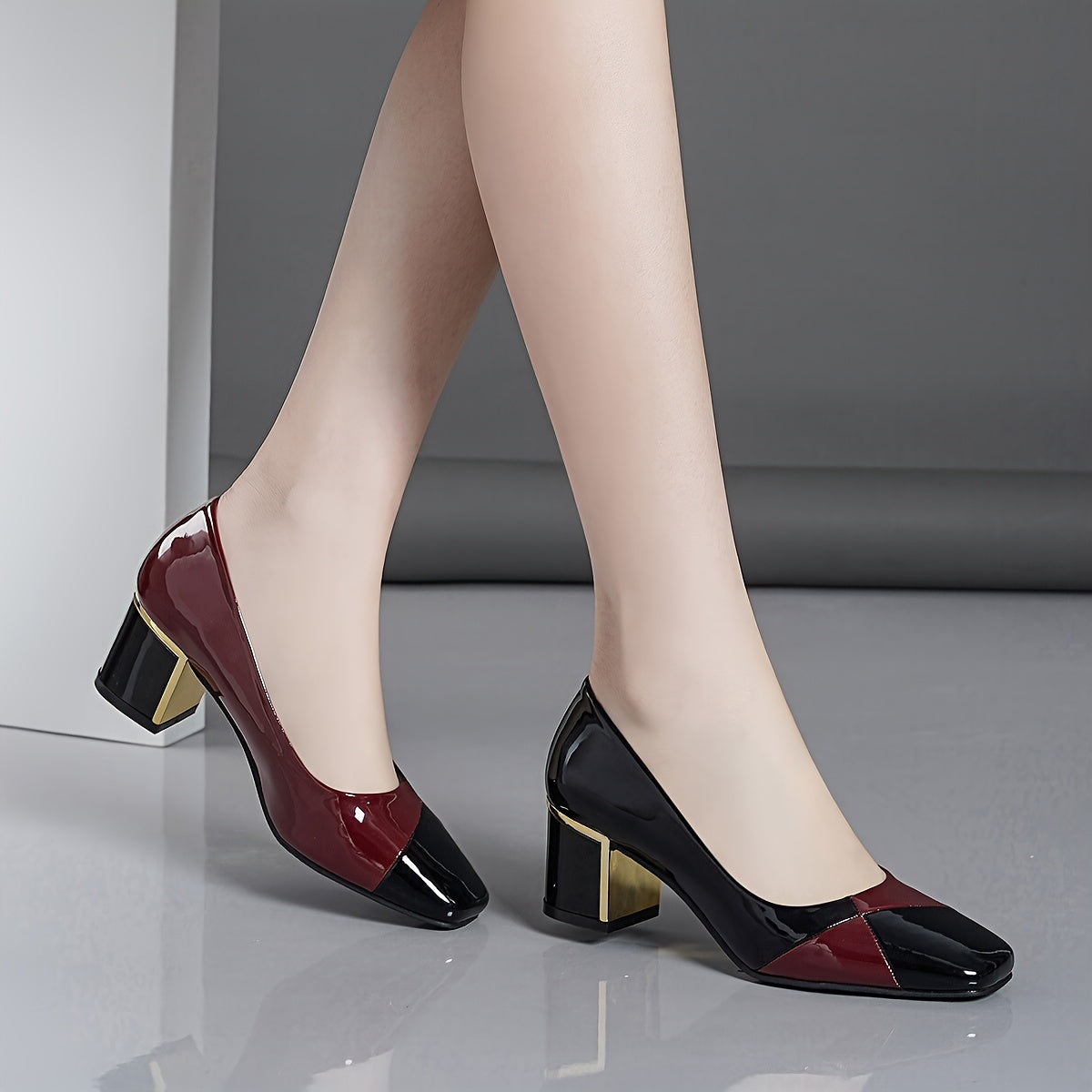 Women's Chunky Heels Square Toe Slip-On Shoes for Fall with Contrasting Colors