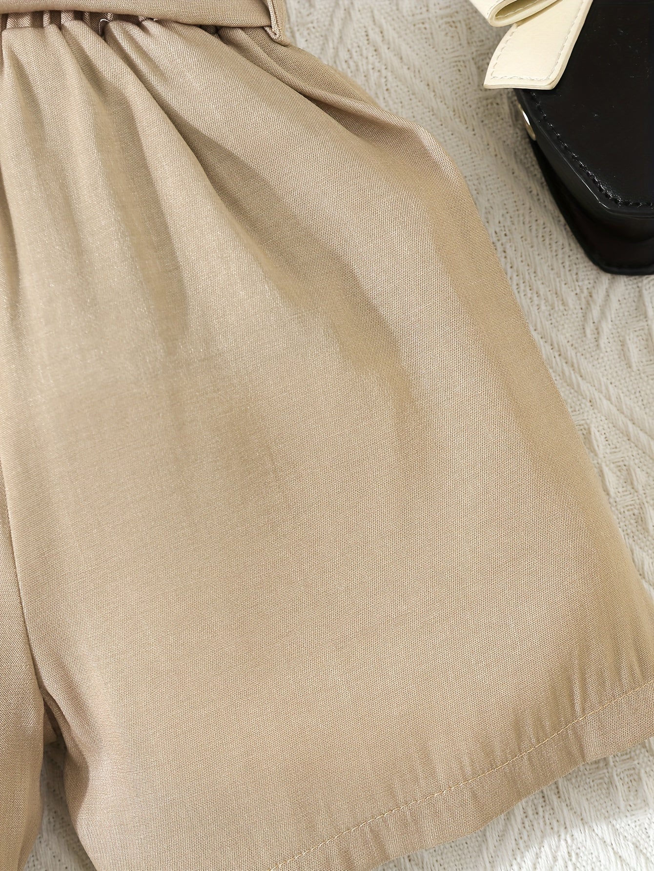 Girls Summer Shorts and Top Set with Lace-Up Sleeveless Top and Belt Shorts