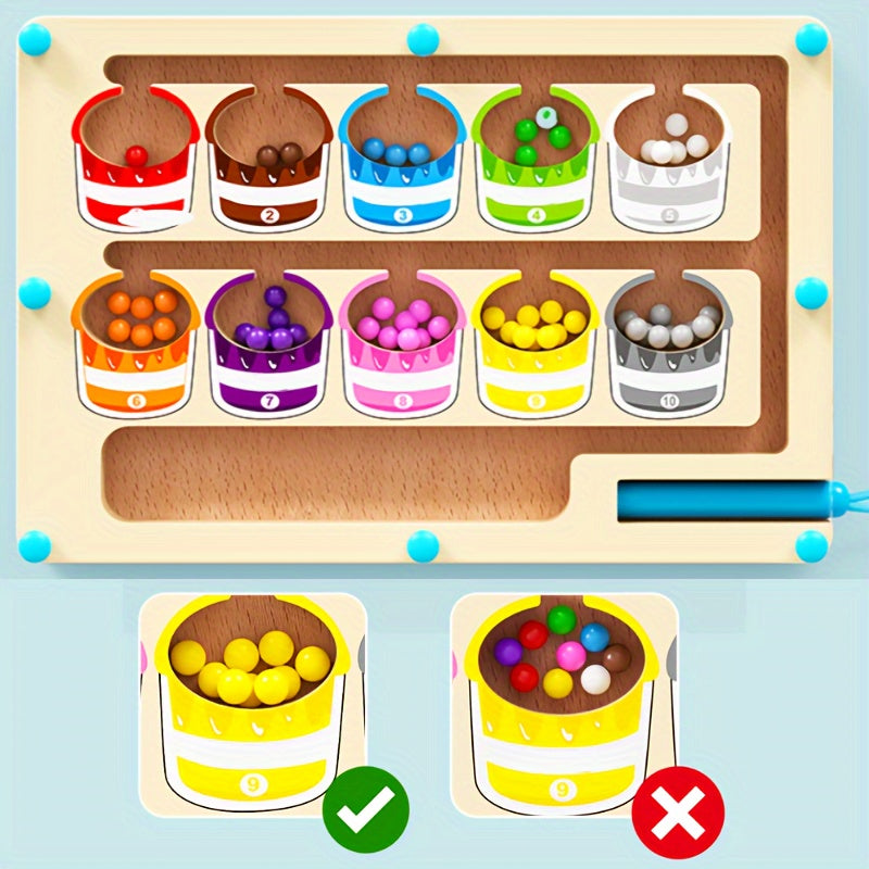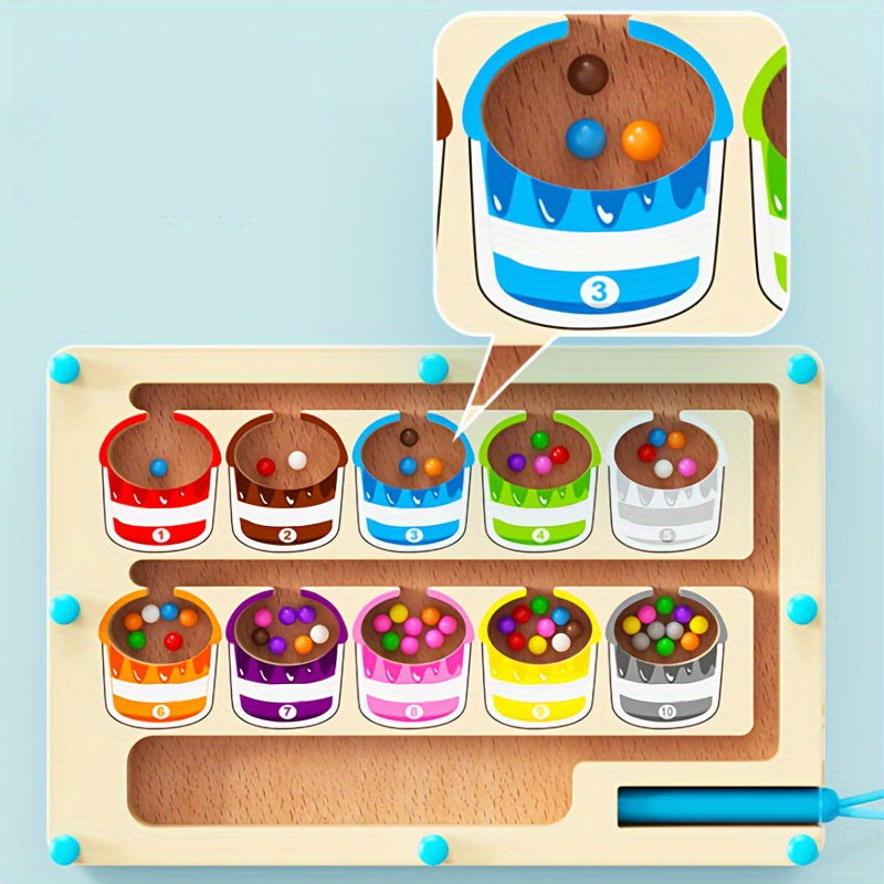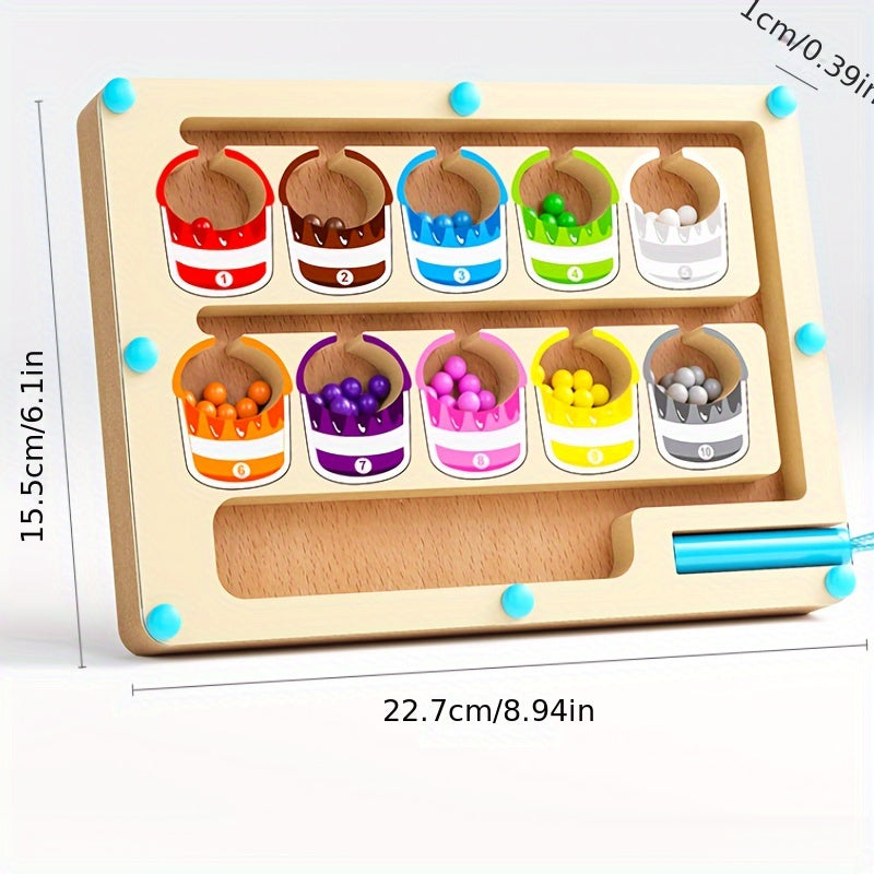 Wooden Magnetic Bead Maze Educational Toy for Kids Age 3 Plus Hand-Eye Coordination Math Skills
