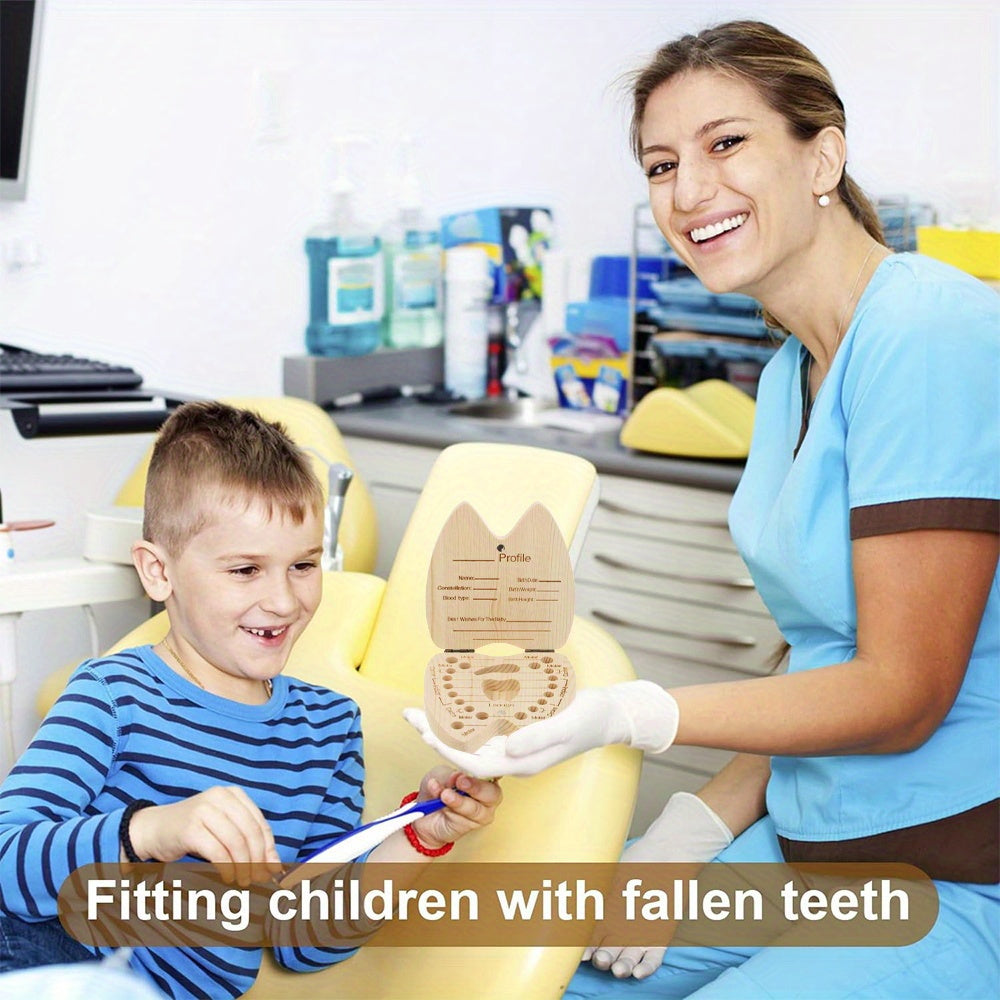 Wooden Keepsake Box for Children's Deciduous Teeth with Floral Letter Pattern