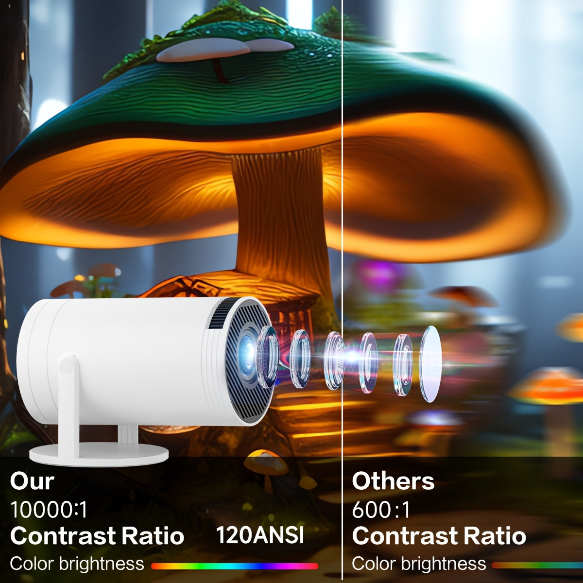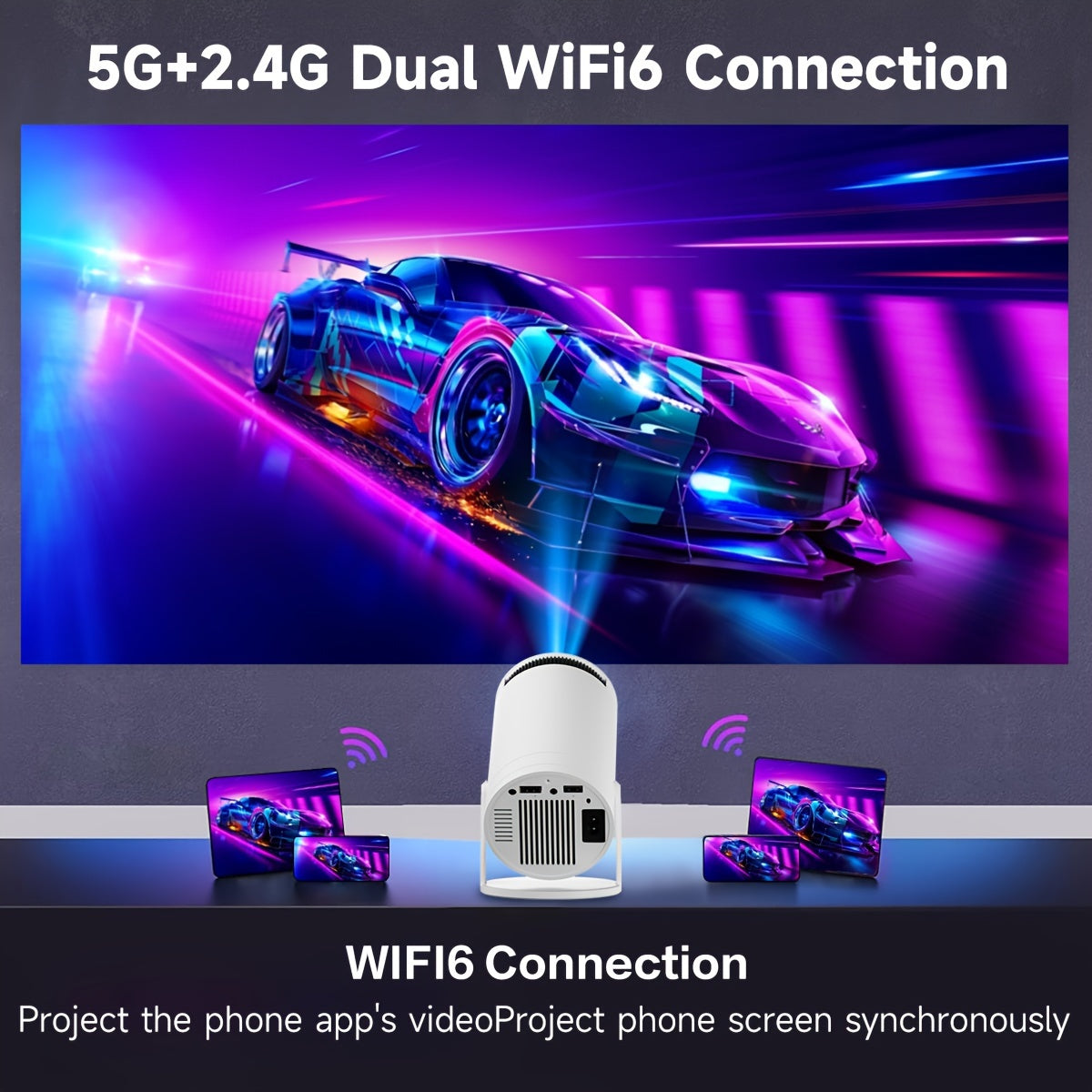 Mini Smart Projector WiFi6 Wireless 5.2 1080P Rotation HDMI Android