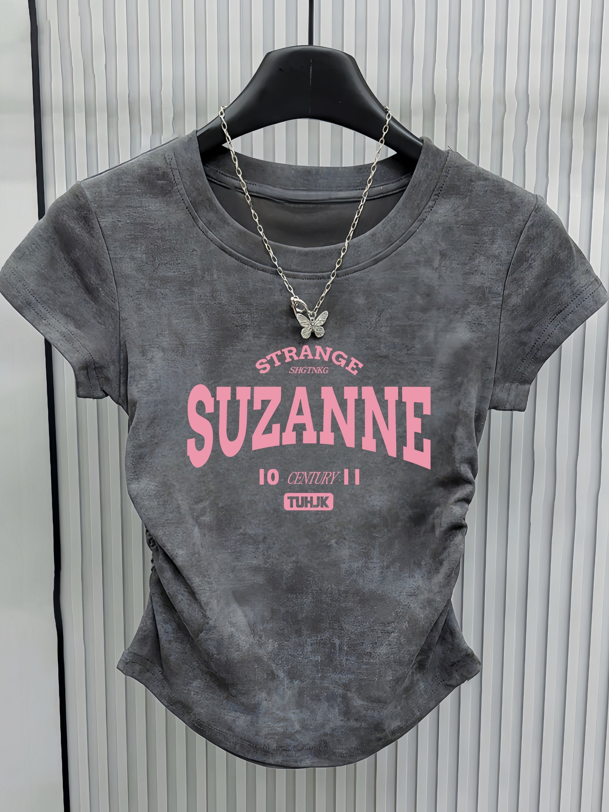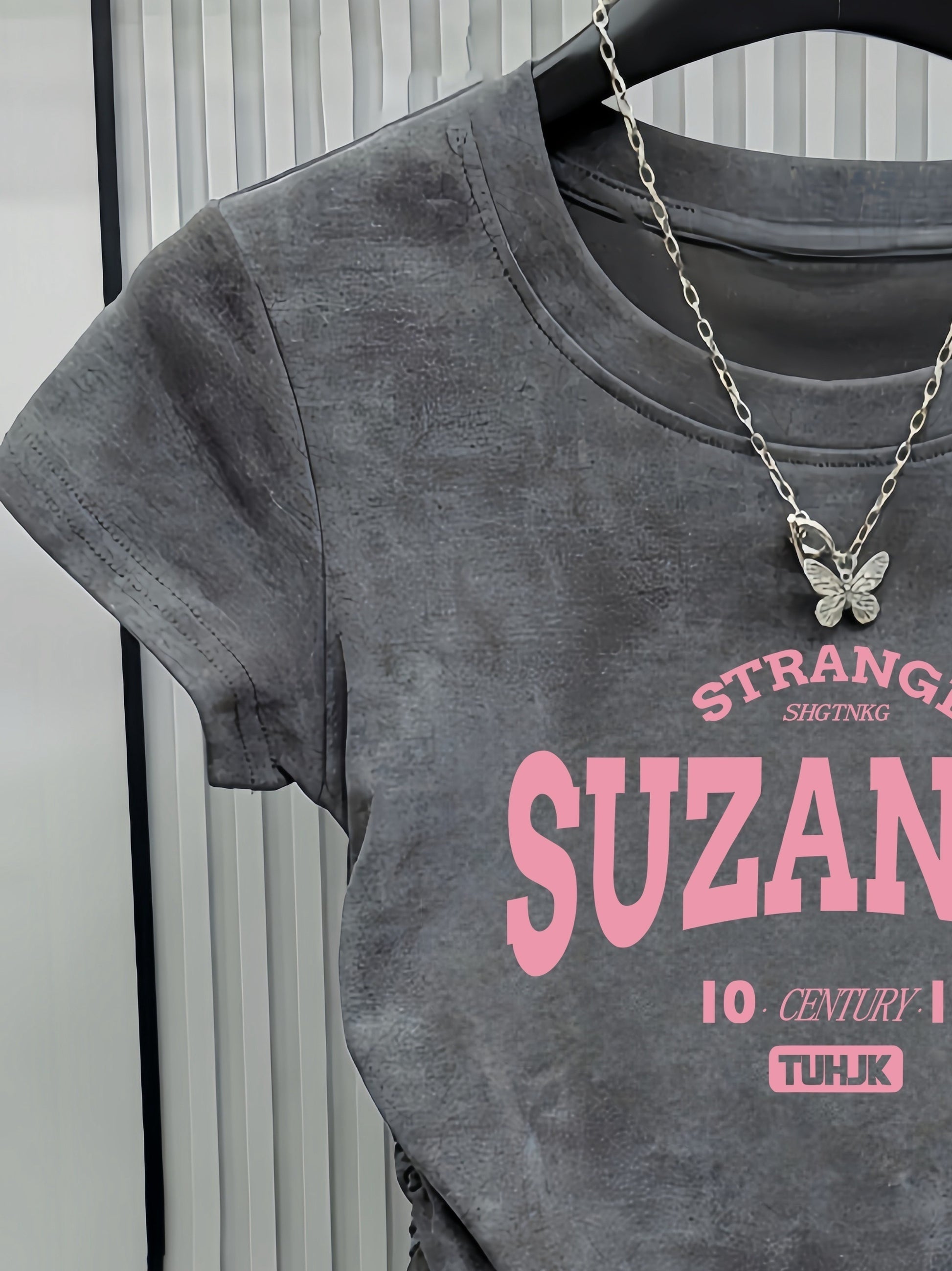 Women's Y2K Letter Print T-Shirt Cotton Blend Crew Neck Short Sleeve Spring Summer Fall