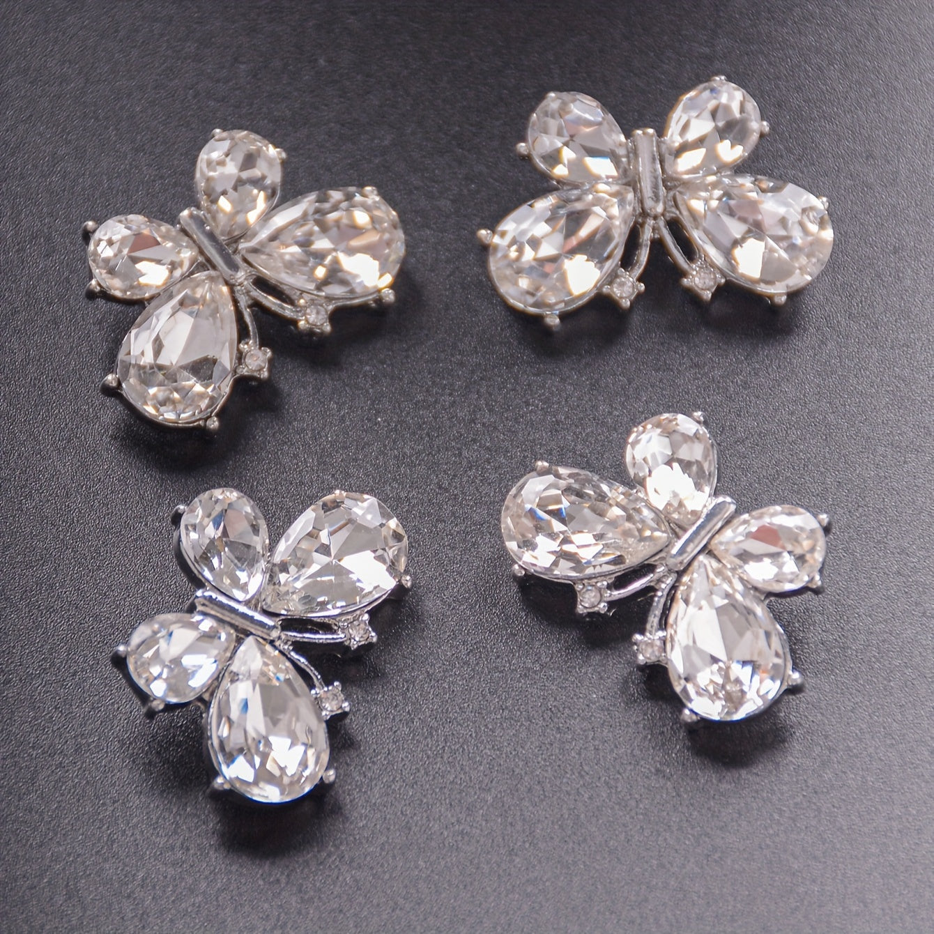 Set of 4 Butterfly Crystal Buttons Alloy for Clothing Accessories and Crafts