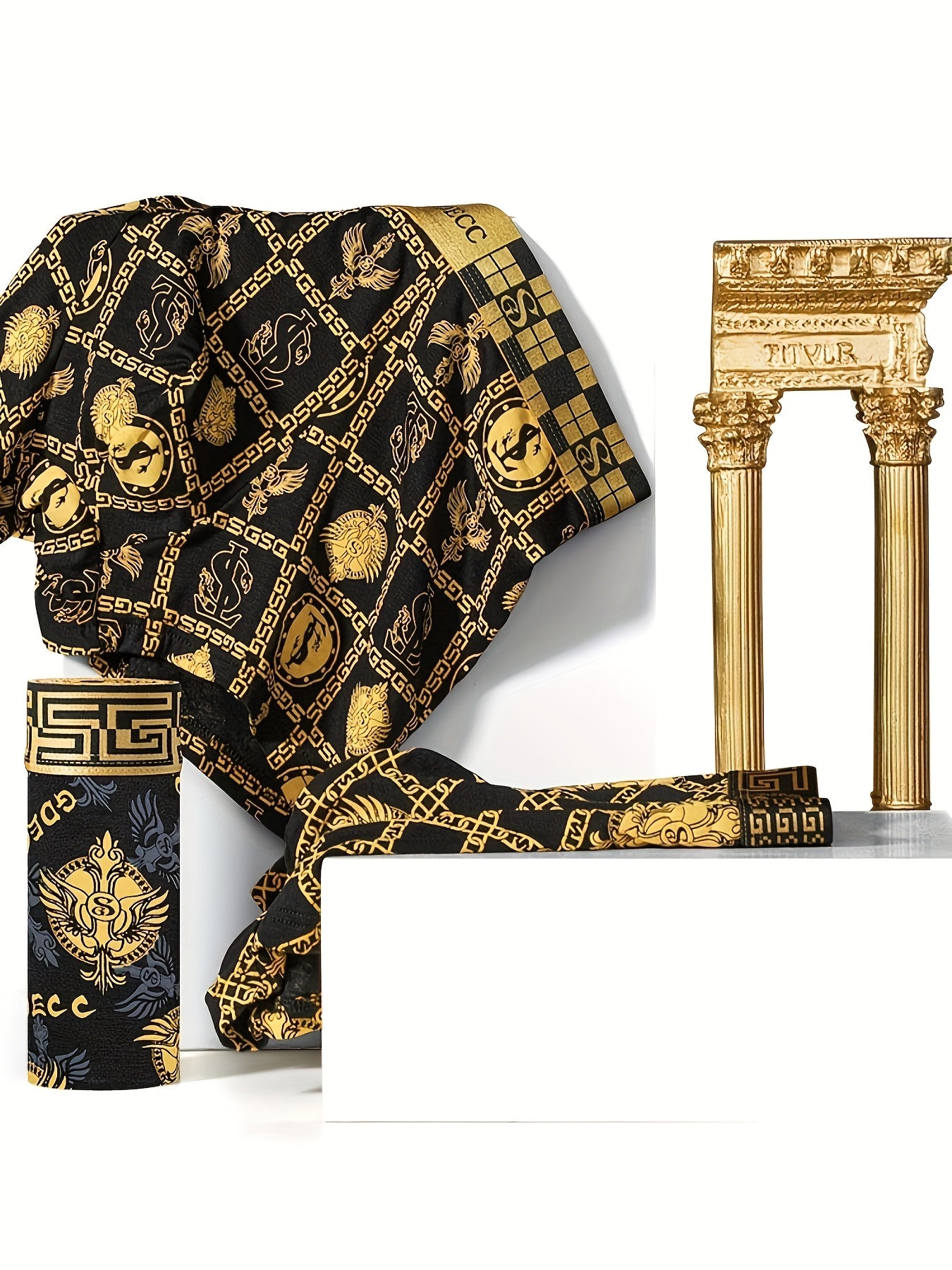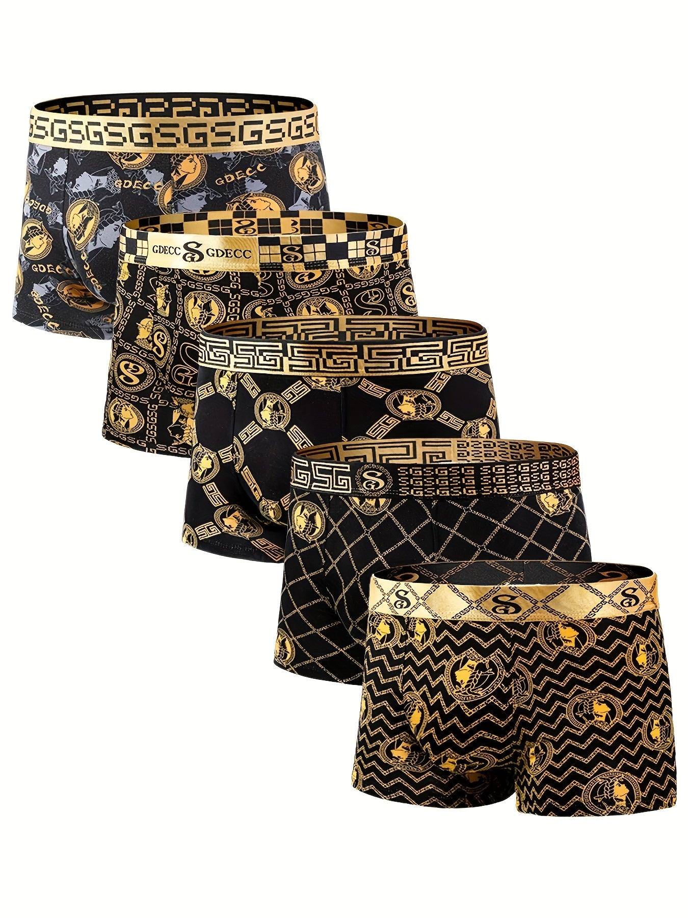 Men's Black and Gold Full-Print Boxer Shorts with Eagle Wings Crowns Chains Coins Moisture-Wicking Quick-Drying Set of 1 5 or 10