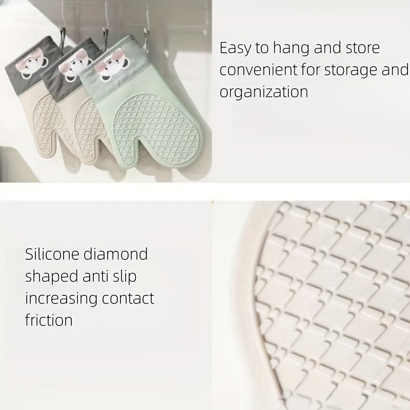 Silicone Heat-Resistant Oven Gloves 1 Pair Non-Slip Microwave Safe Baking Mitts