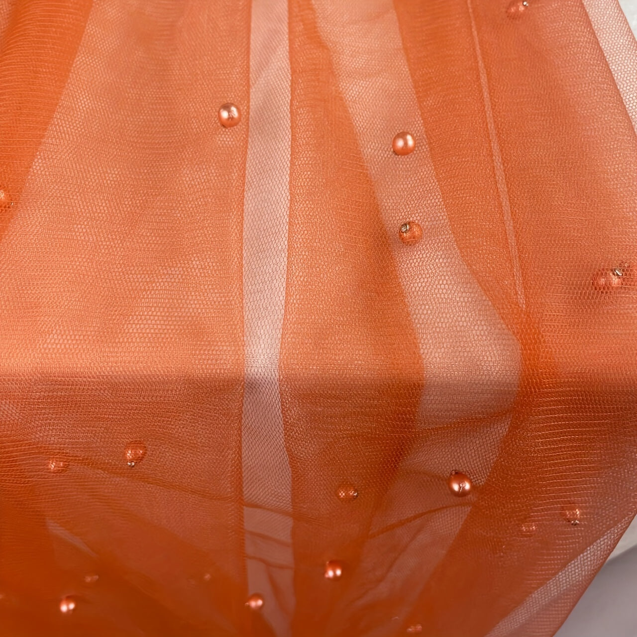 Pearl Lace Embroidered Table Runner for Wedding Arch Bridal Shower Event White Chiffon Tulle