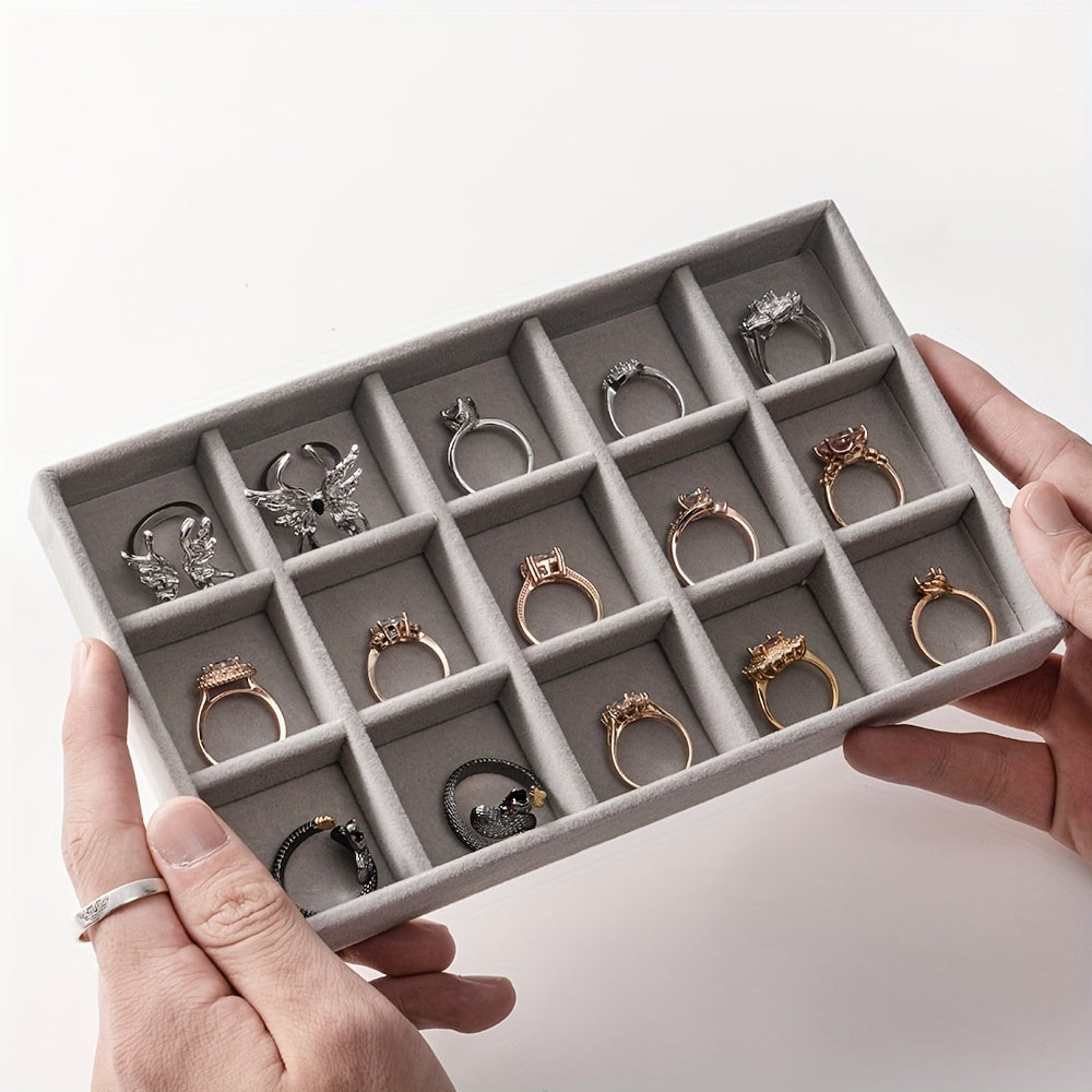 Nylon Light Grey Jewelry Tray 21x12.5cm Mini Ring Storage Box for Travel and Home