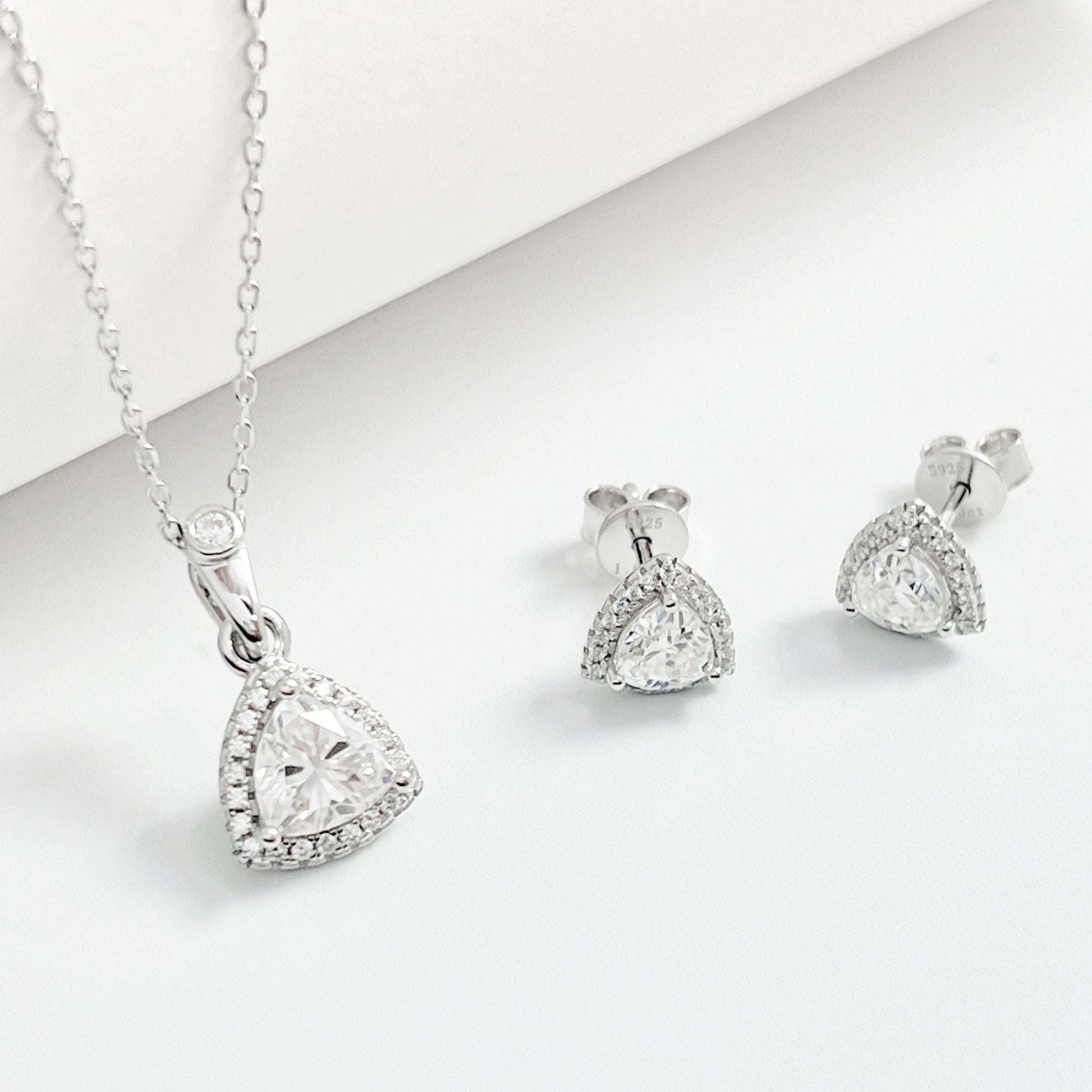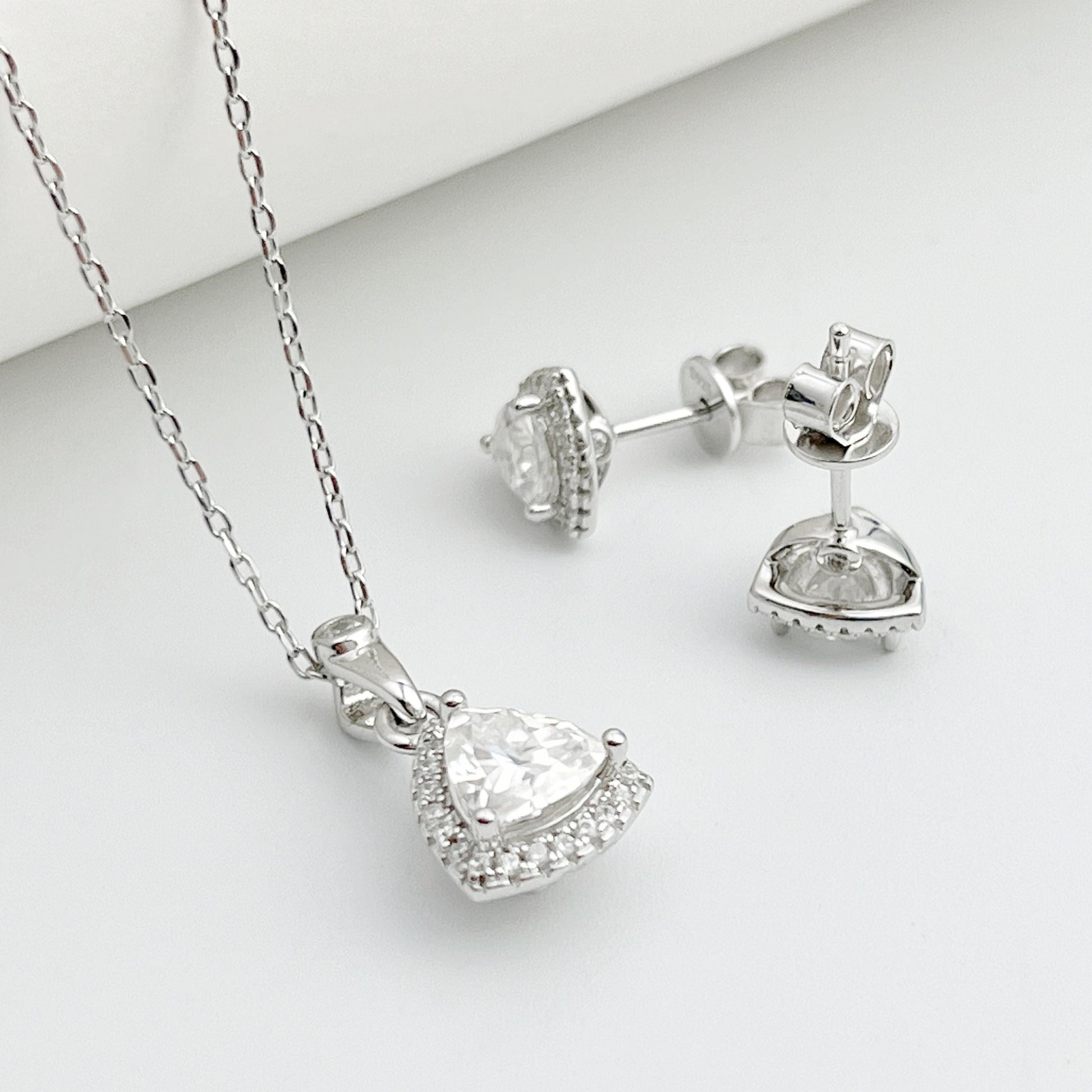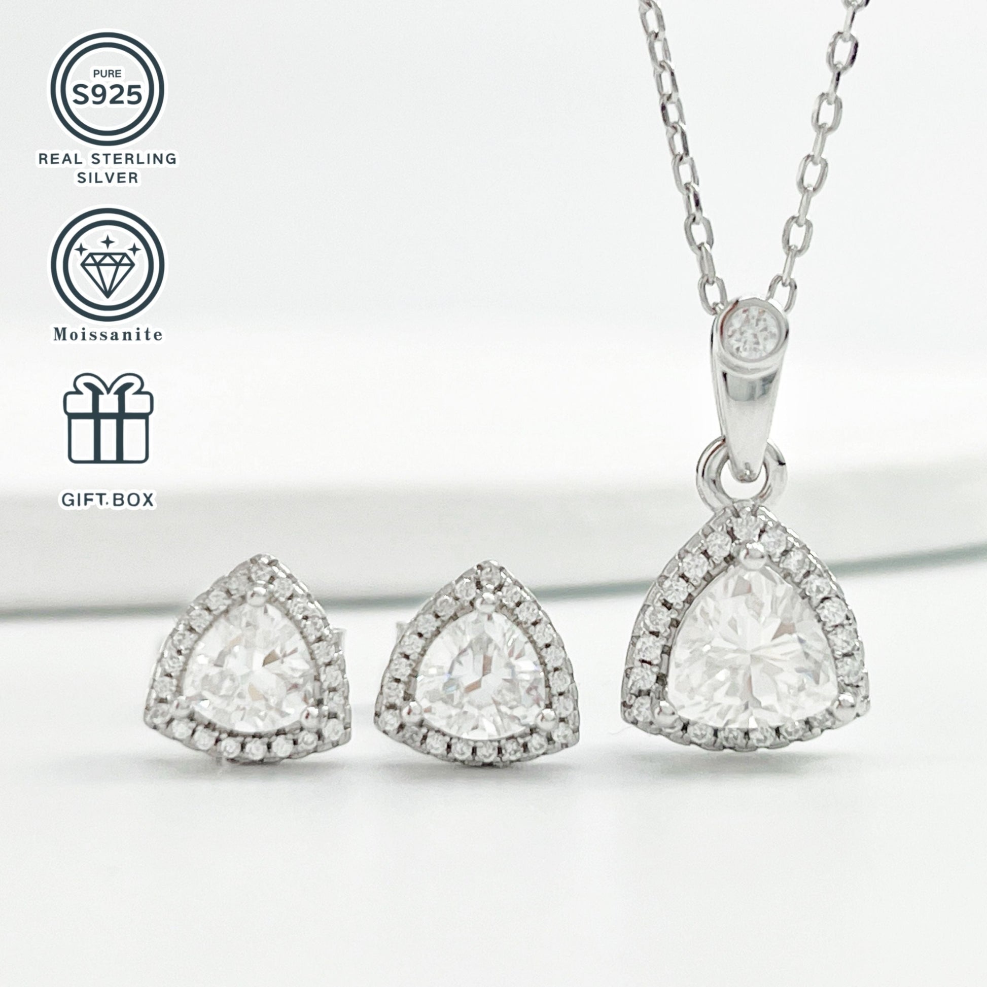 S925 Silver Moissanite Jewelry Set Necklace and Earrings 1.0CT and 0.5CT Gift
