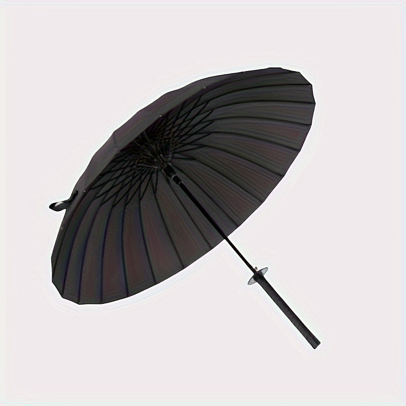 Black Samurai-Inspired Umbrella with Sword Handle 24-Rib Foldable Durable Cloth