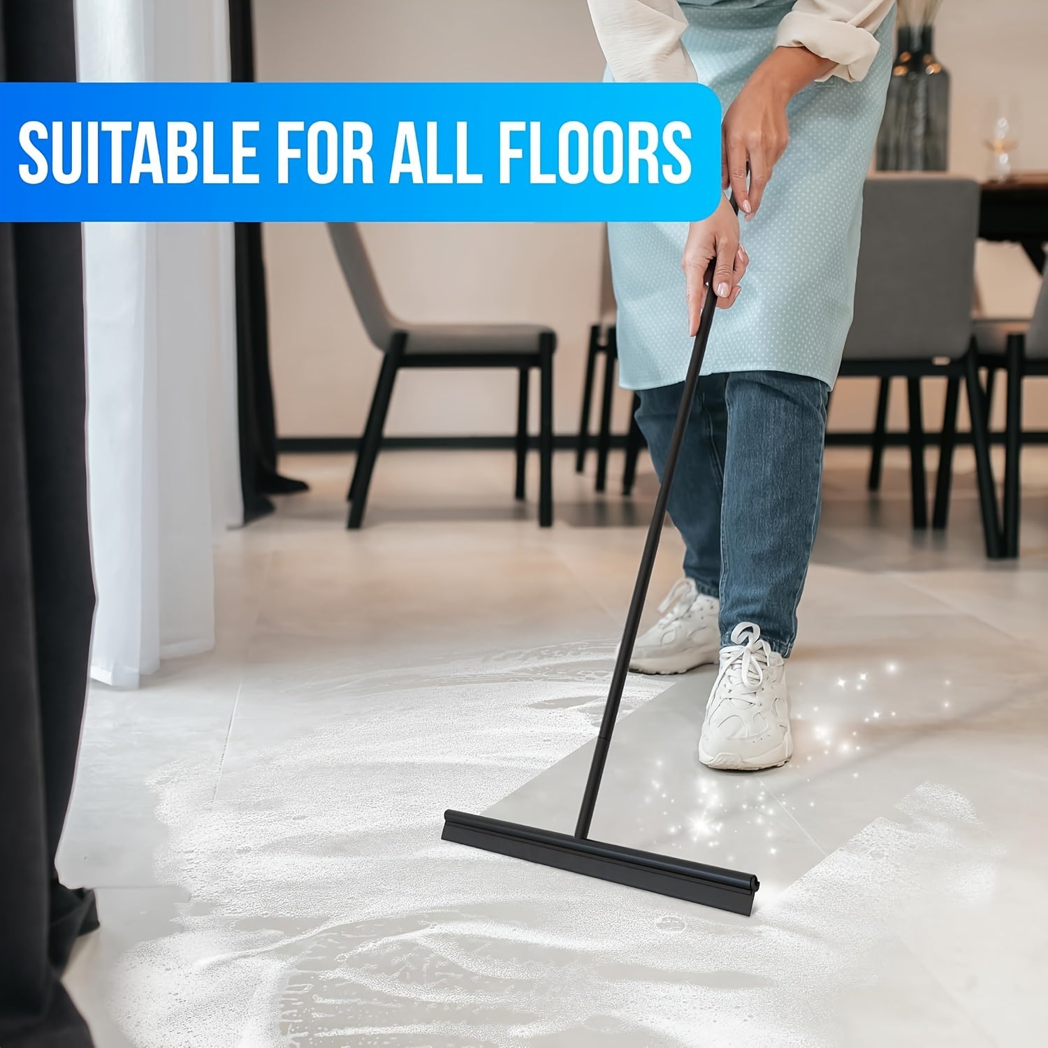 Stainless Steel Floor Squeegee with Extendable Handle, Multi-Purpose Cleaning Tool