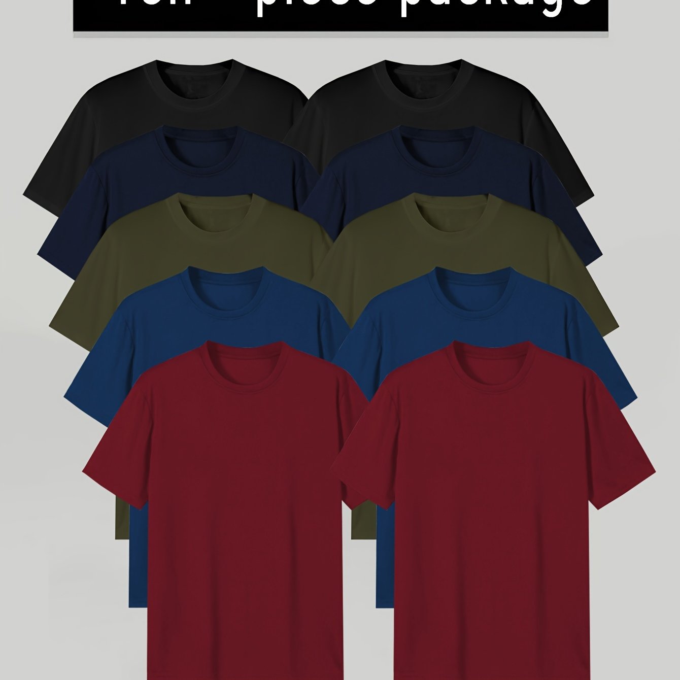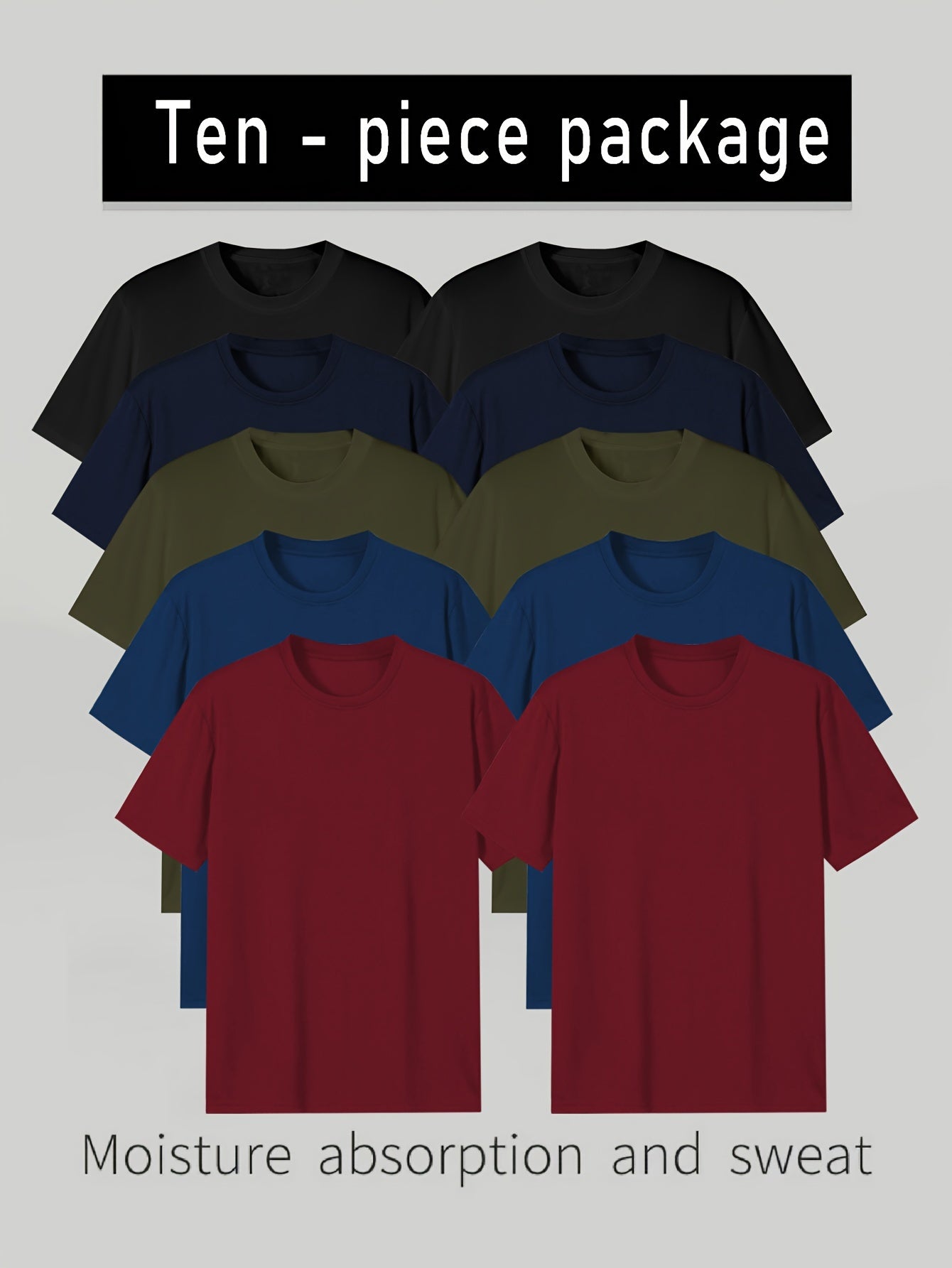 Men's Casual Solid T-Shirts Short Sleeve Crew Neck Moisture Wicking Pack of 10