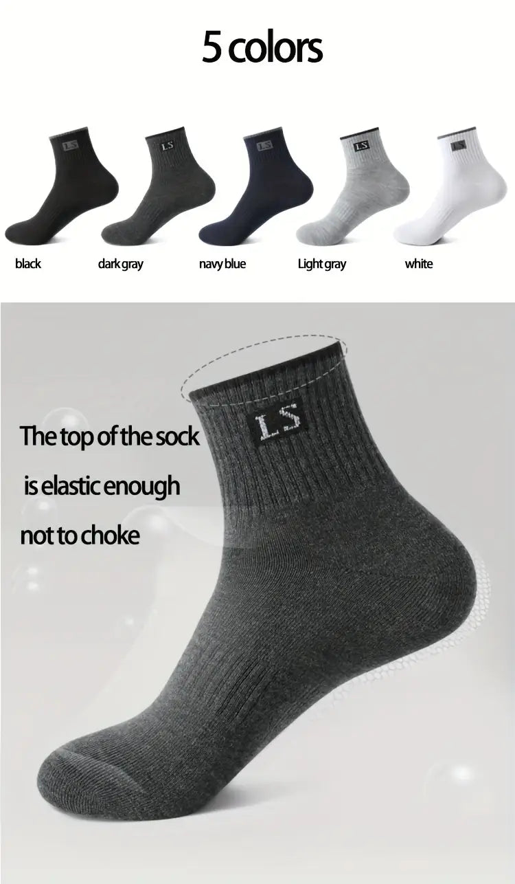 Men's Solid Crew Socks 10 Pairs Breathable Casual Outdoor All Seasons