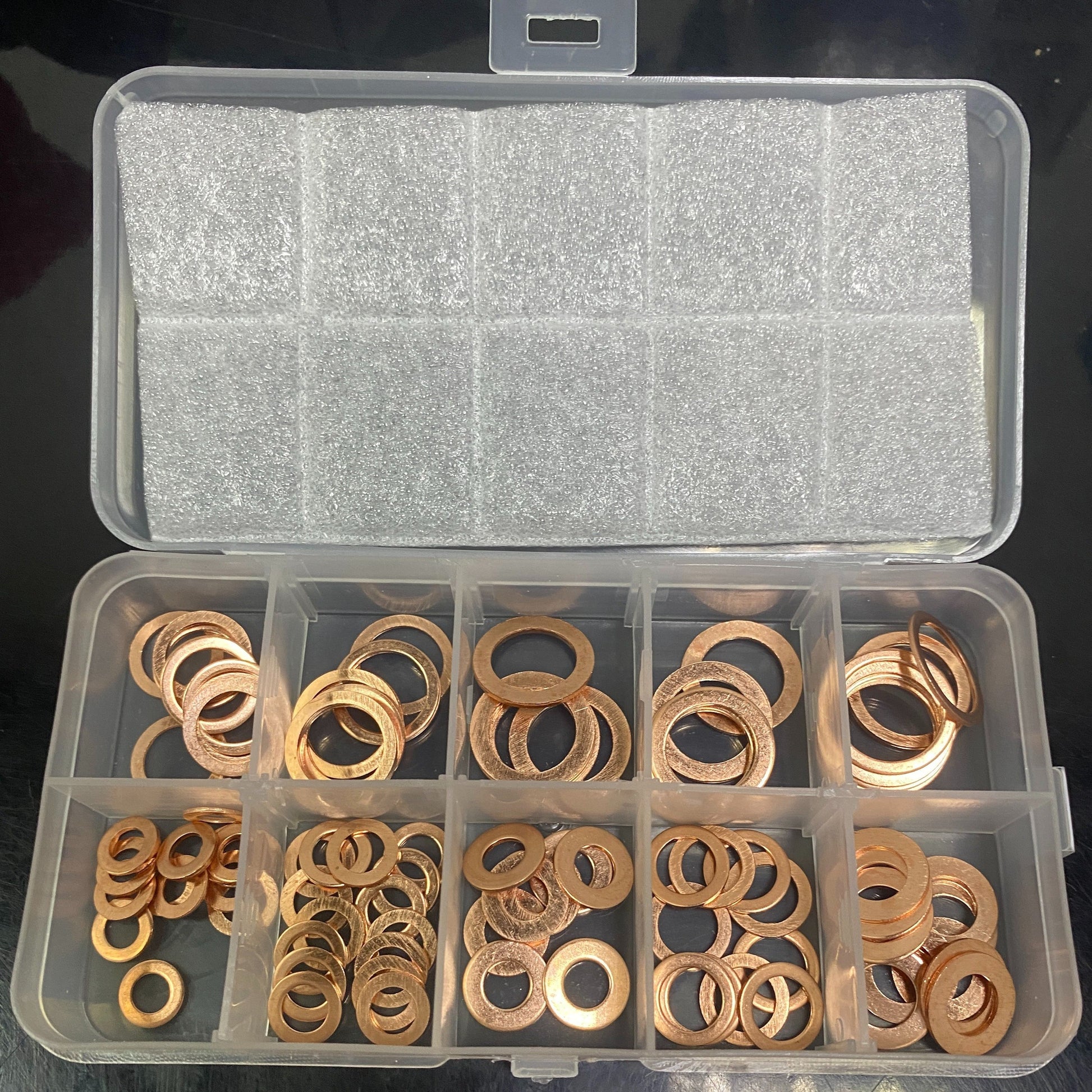 100pcs Copper Washer Gasket Nut and Bolt Set Flat Ring Seal Assortment Kit