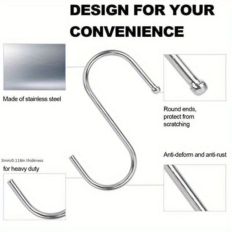 10Pcs Stainless Steel S-Hooks for Kitchen Bathroom Garden Workshop