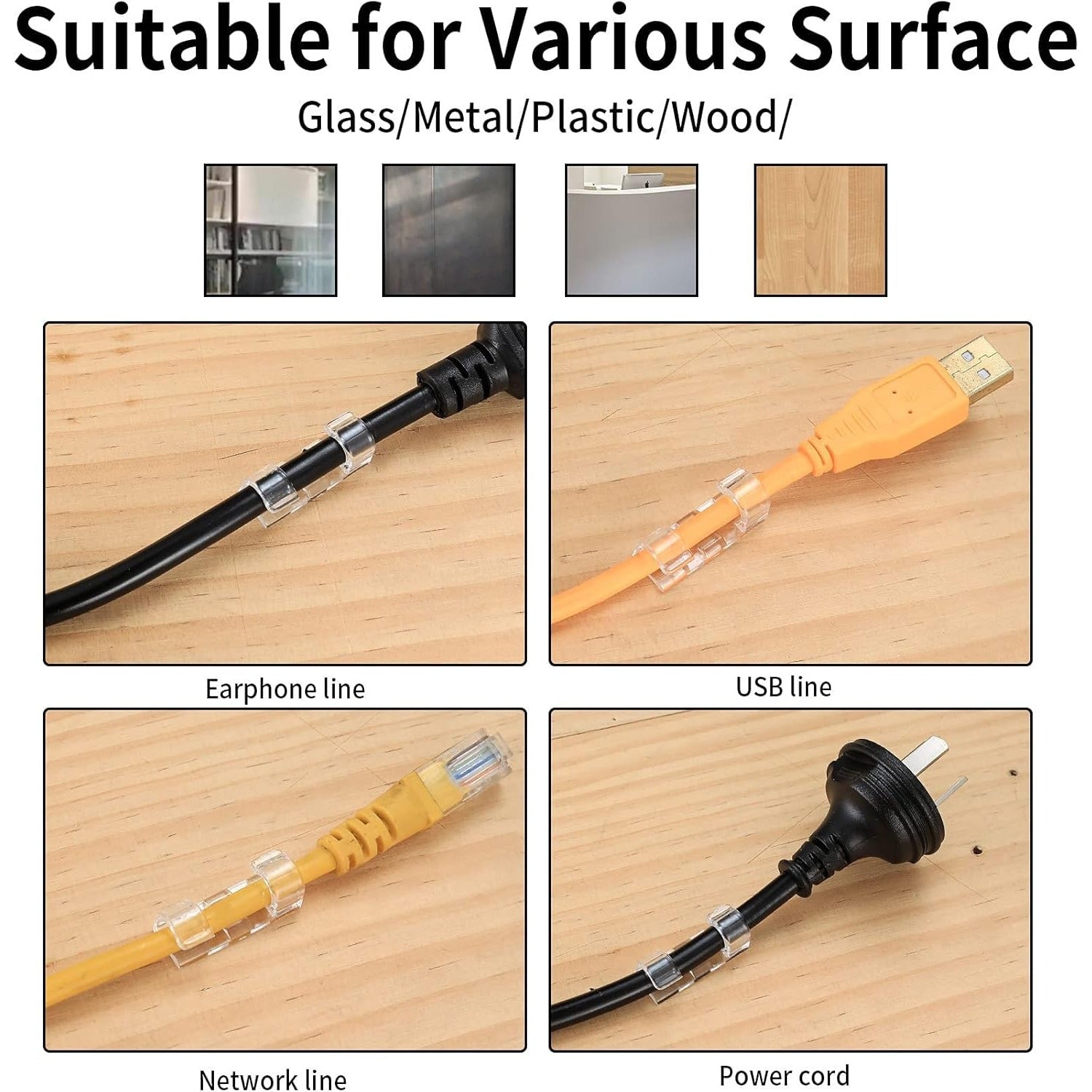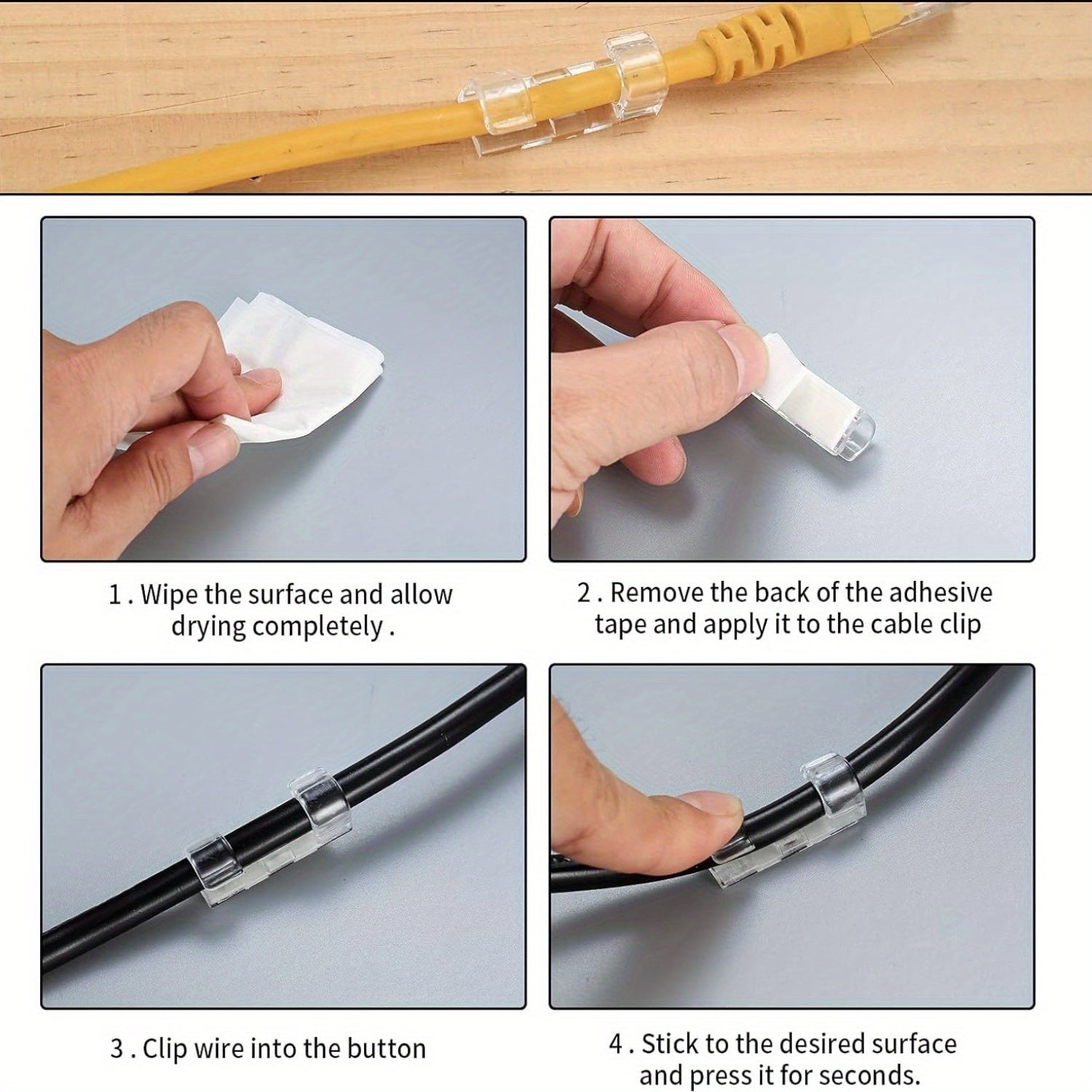 120-Pack Clear Adhesive PC Cable Clips for Wire Organization in Home and Office