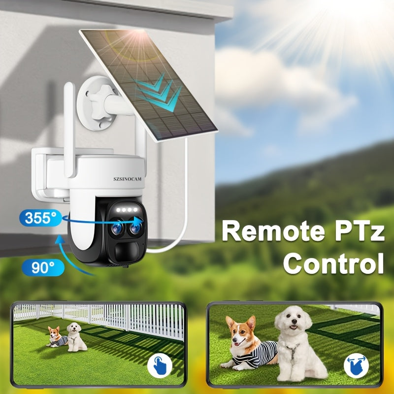 1296P HD Outdoor Security Camera with Solar Panel PTZ Night Vision Two-Way Audio Motion Detection