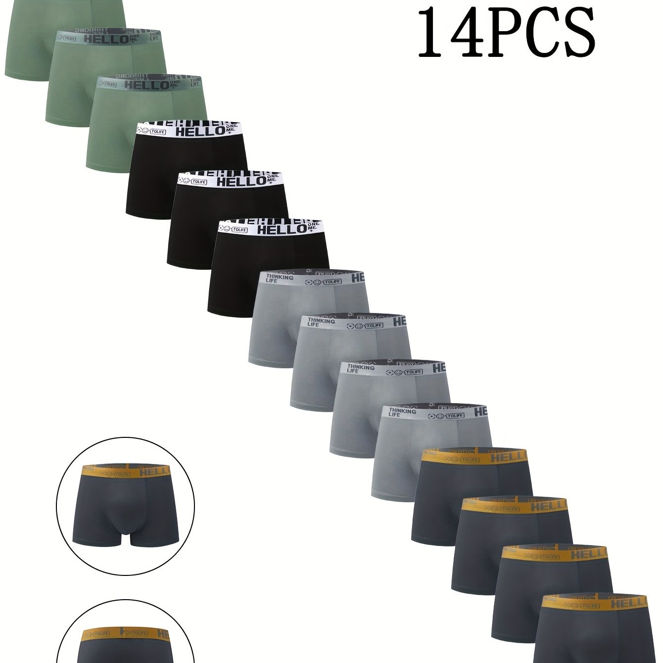 14pcs Men's Boxer Briefs Breathable Quick-Drying High Stretch Sports Trunks with 'Hello' Print