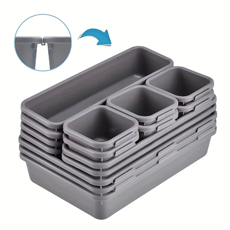 15-Piece Interlocking Desk Drawer Organizer Set for Office Bathroom Kitchen Makeup