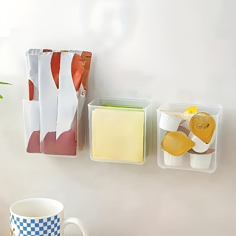 Wall-Mounted Adhesive Storage Box Plastic Transparent Bathroom Kitchen Laundry Organizer