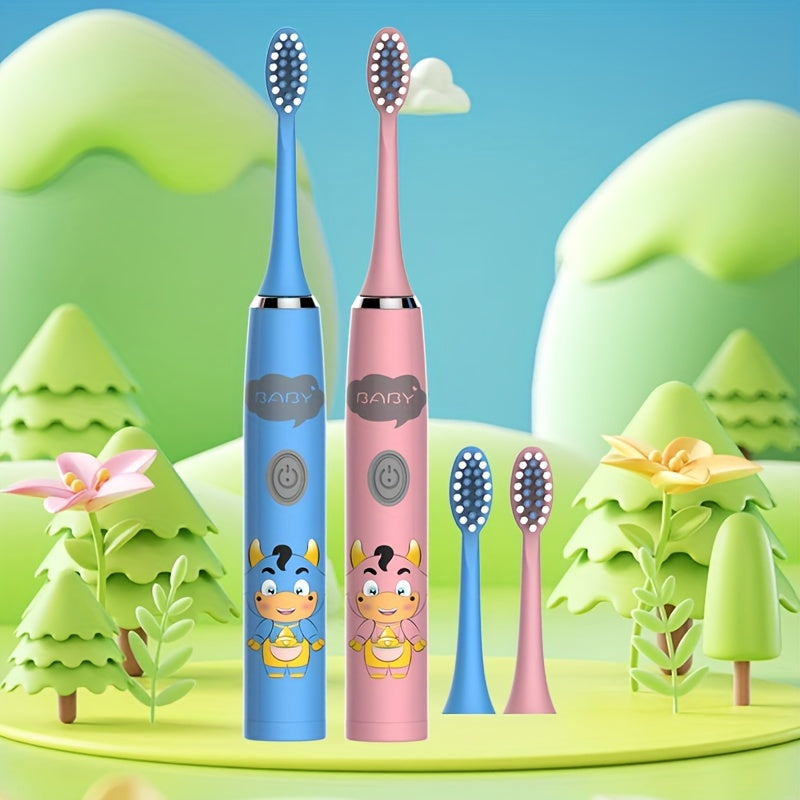 Electric Toothbrushes for Kids with Replaceable Ultra-Soft Bristles and Smart Timer (2 Pack)
