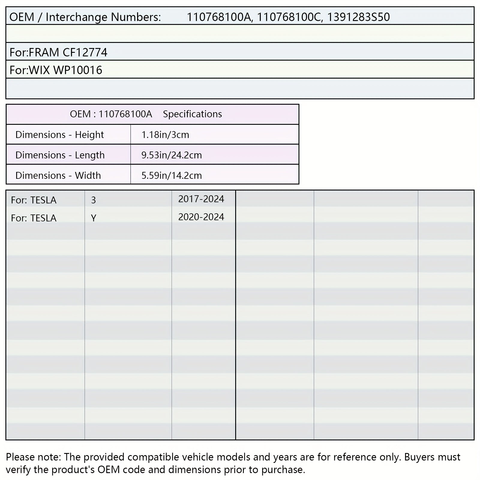 2-Pack Carbon Fiber Cabin Air Filters for Tesla Model 3 and Y Activated Carbon Filter