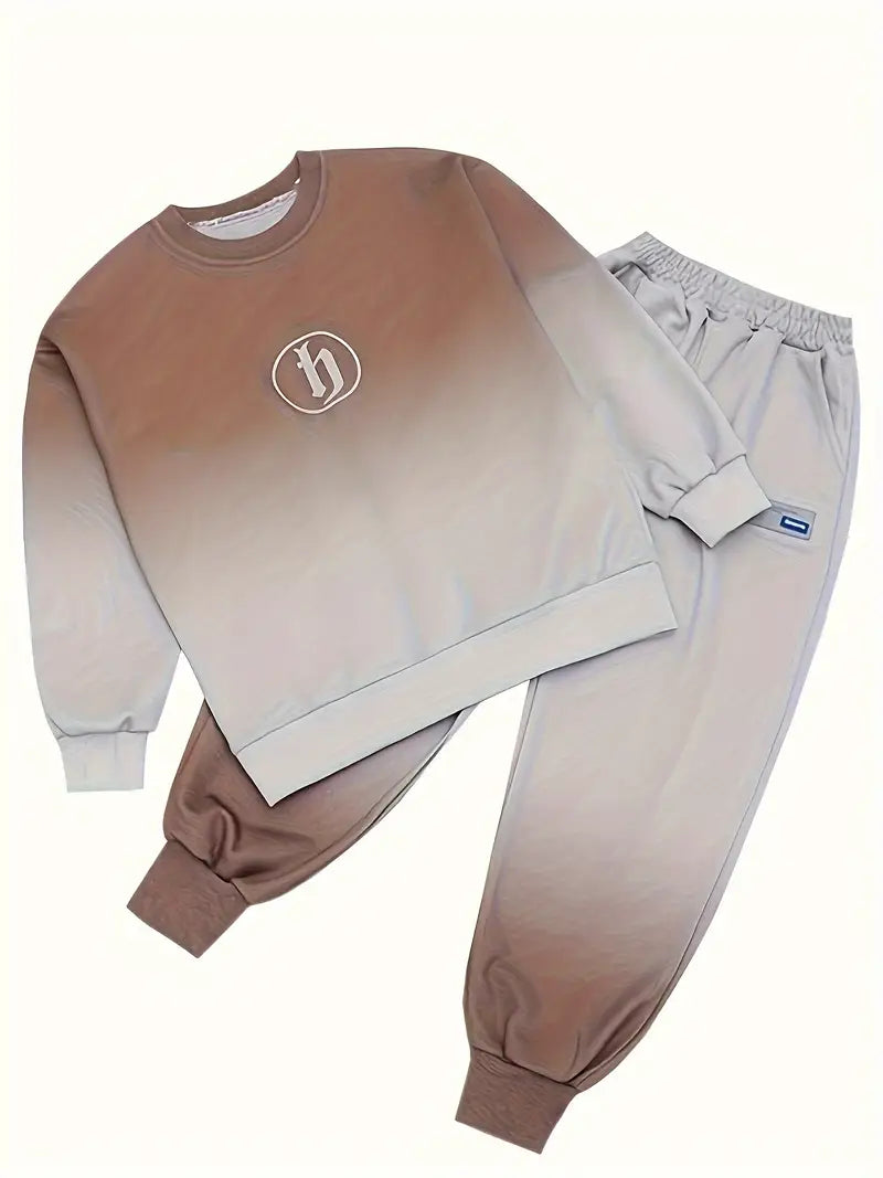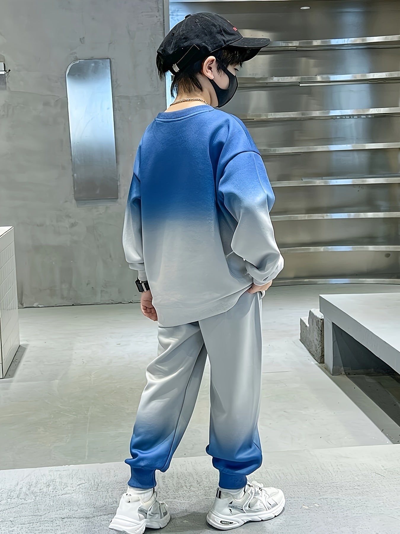 Kids Boys Gradient Color Long Sleeve Sweatshirt and Pants Set for Outdoor Wear