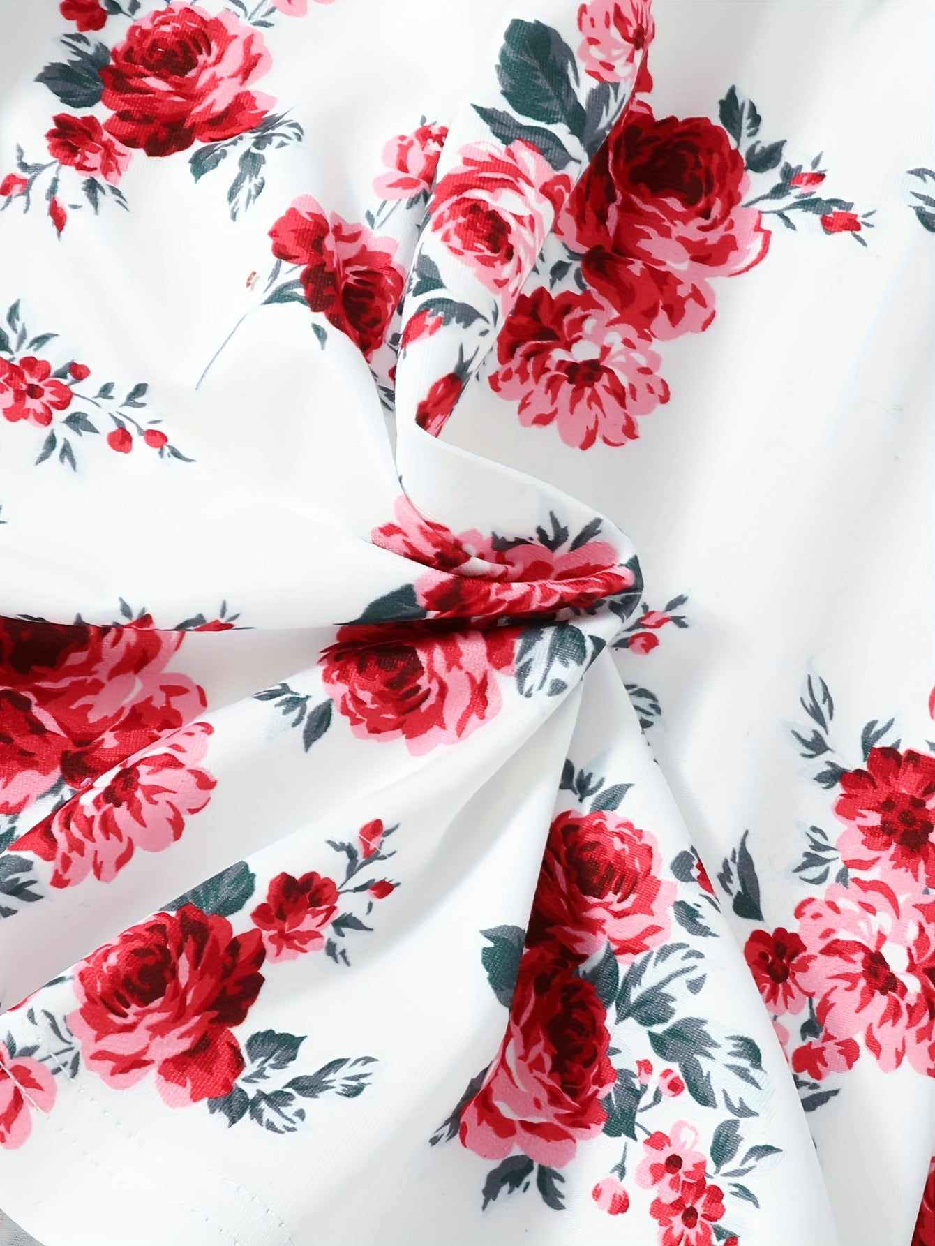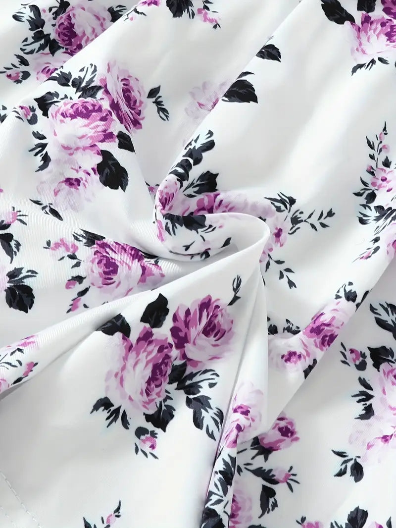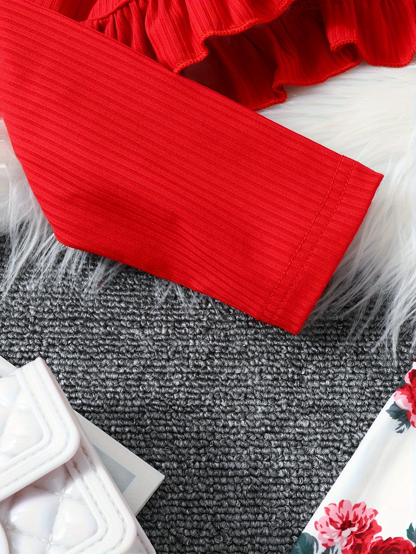 Girls' Spring Fall Floral Dress Set with Ruffle Hem and Crew Neck Top