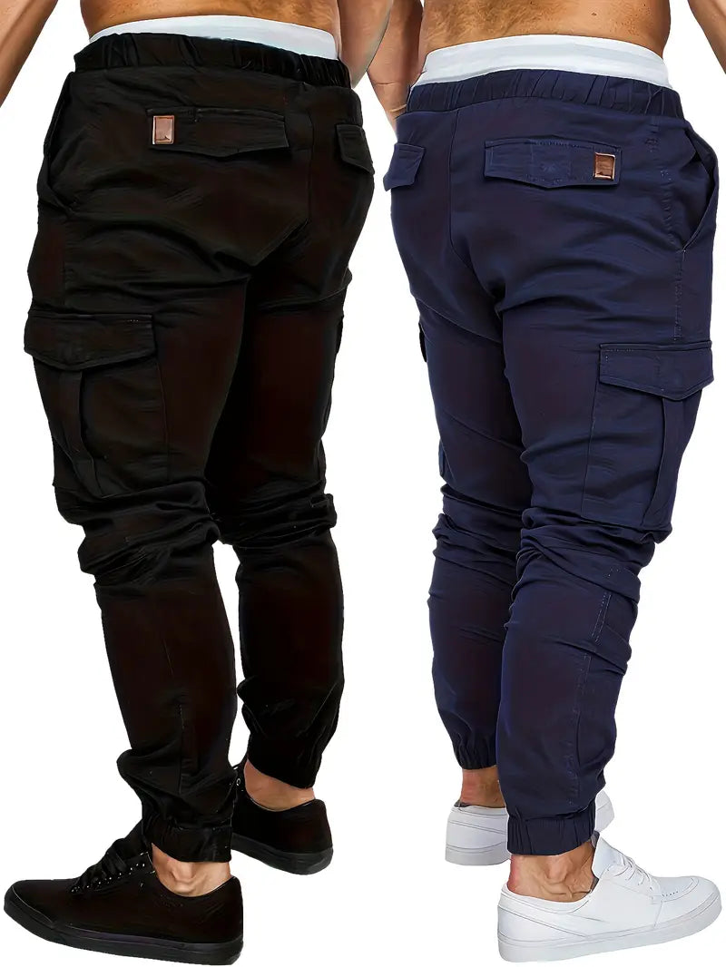 Men's Cargo Pants Set Cotton Solid Color Drawstring Waist Regular Fit All-Season