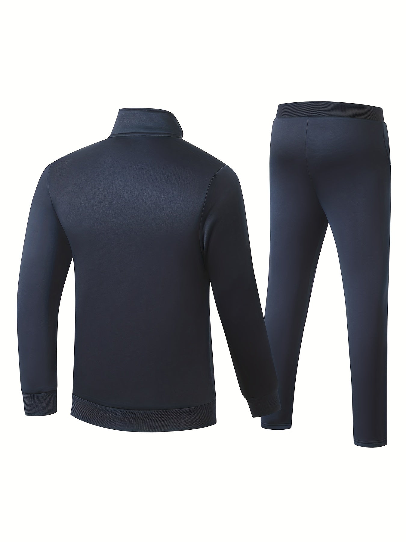 Men's Polyester Sports Suit with Zip-Up Jacket and Drawstring Pants for Outdoor Activities