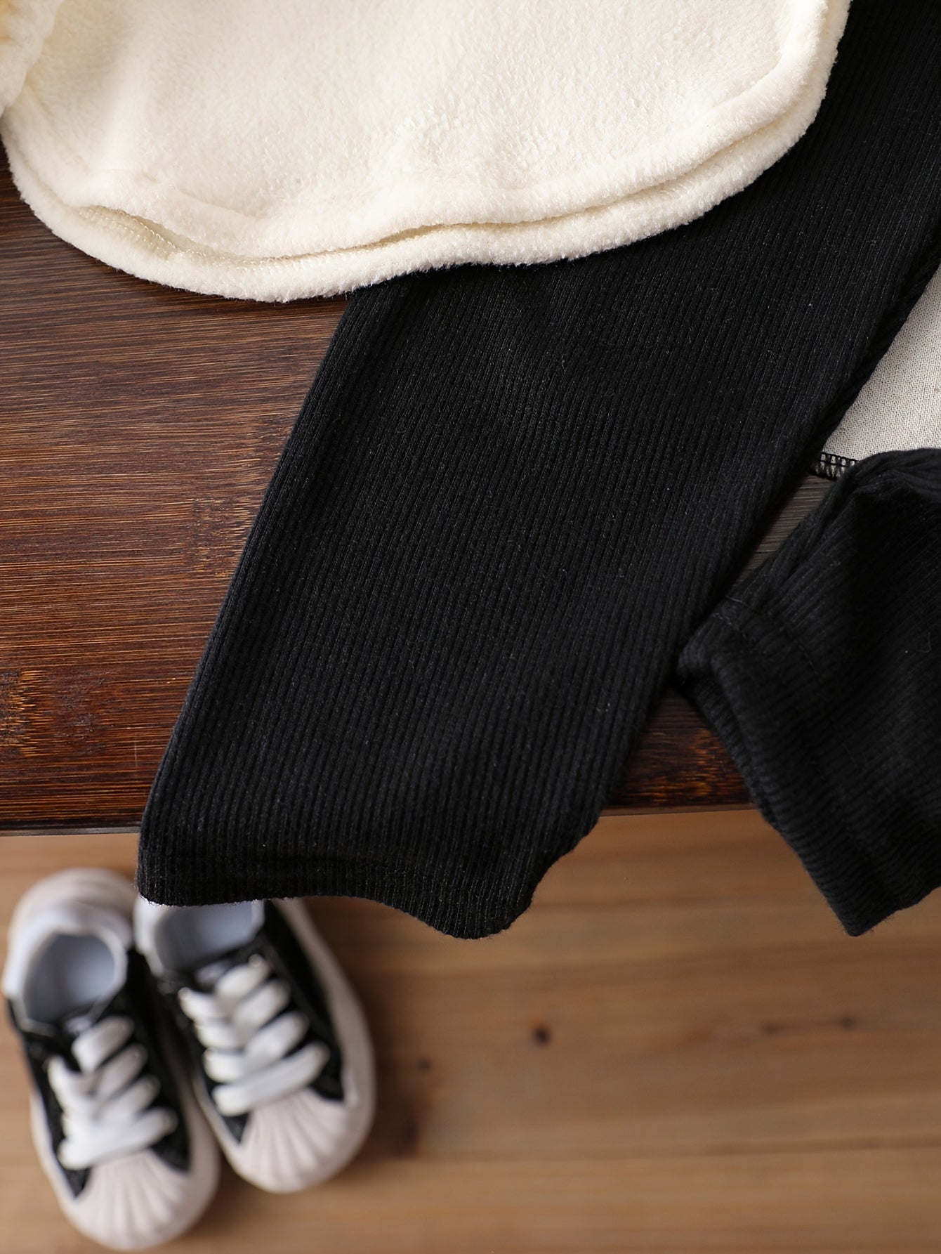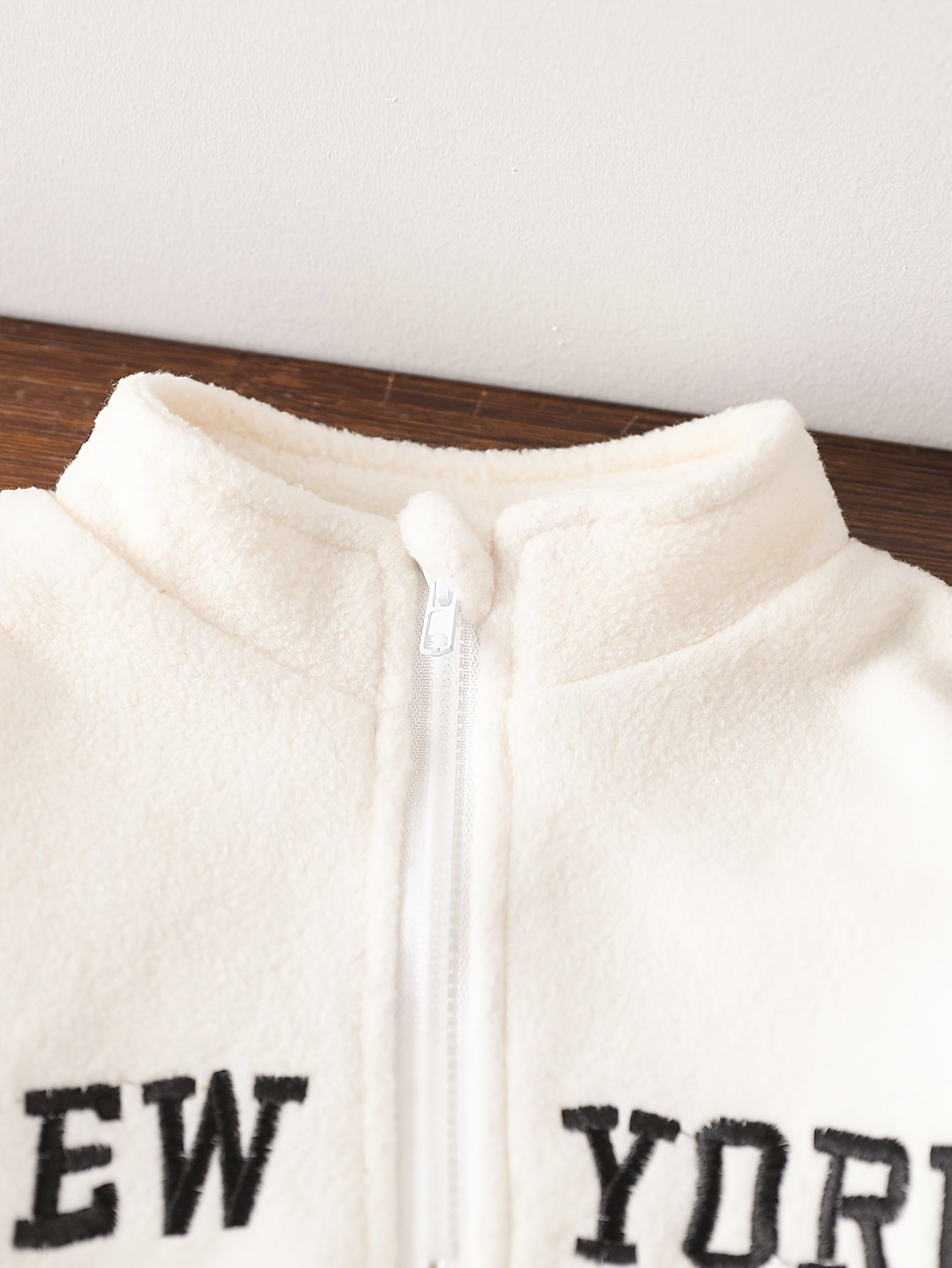 Girls Kids 2-Piece Set Fall Winter Street Fashion Letter Embroidery Zipper Slim Trousers