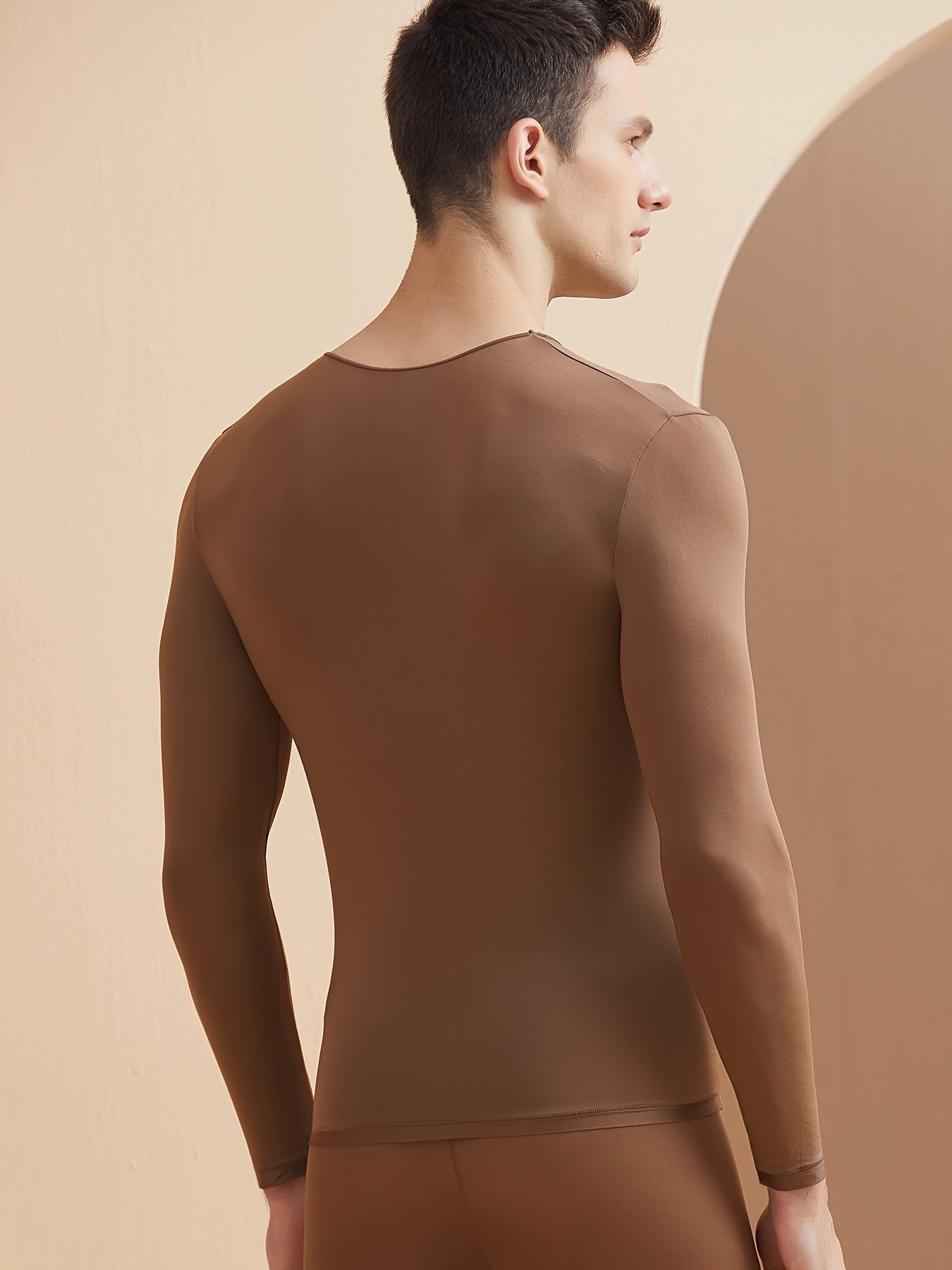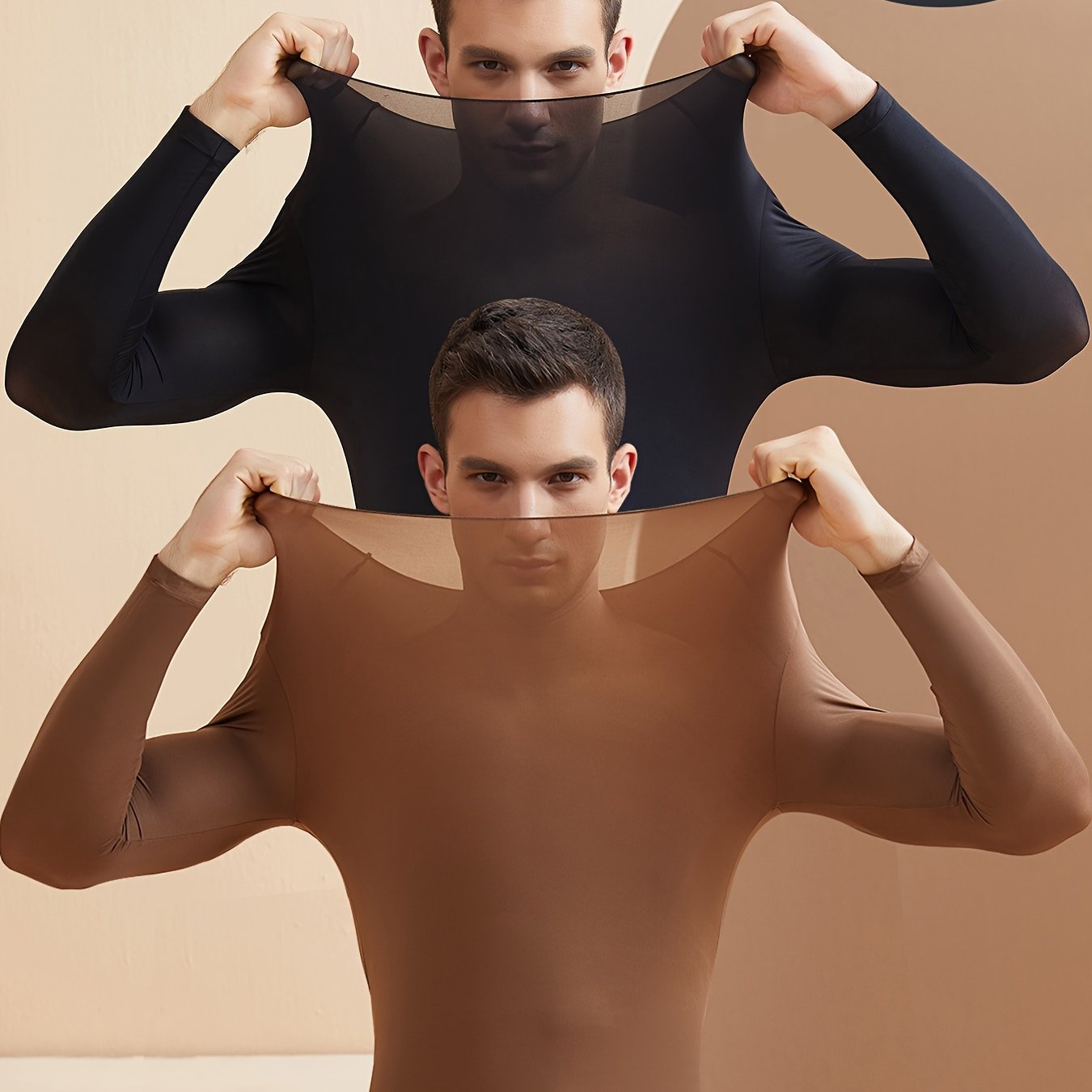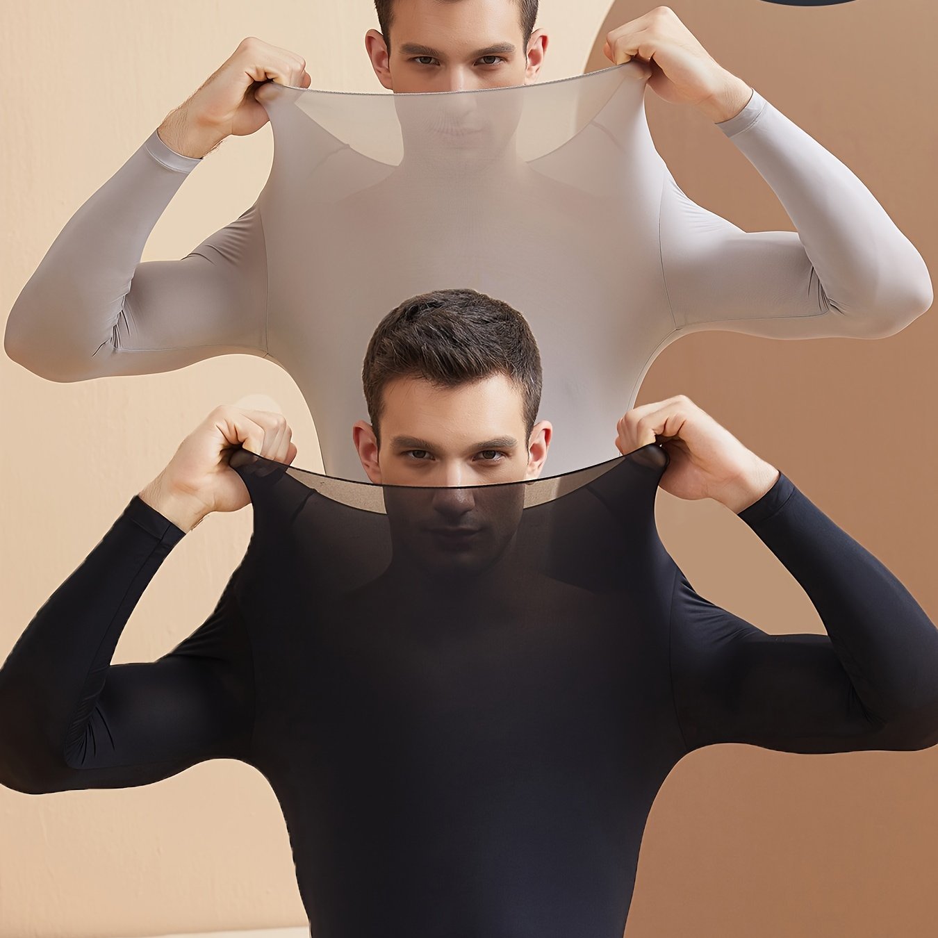 Men's Thermal Top Slim Fit Seamless Knit High Stretch Crew Neck for Fall Winter