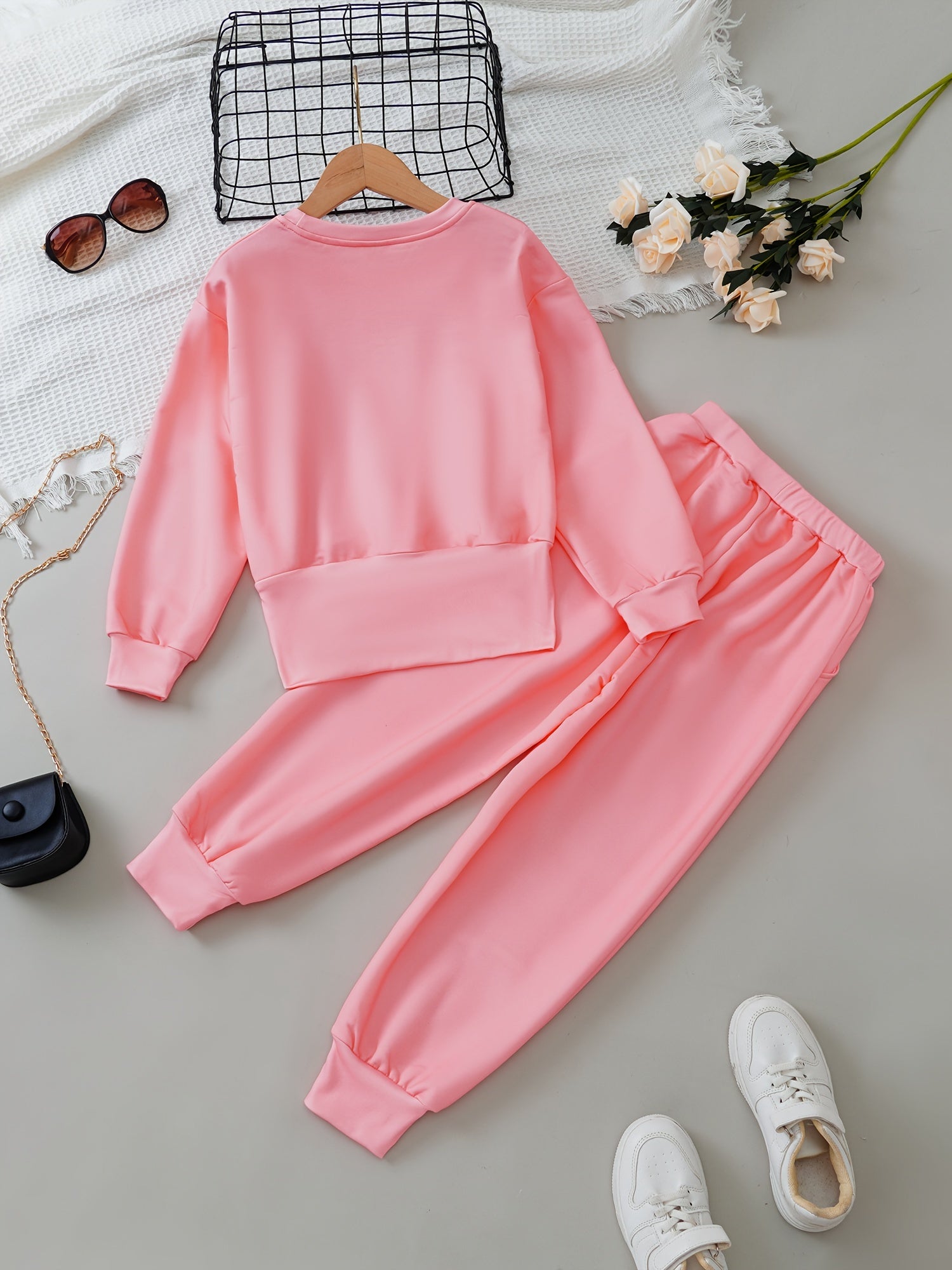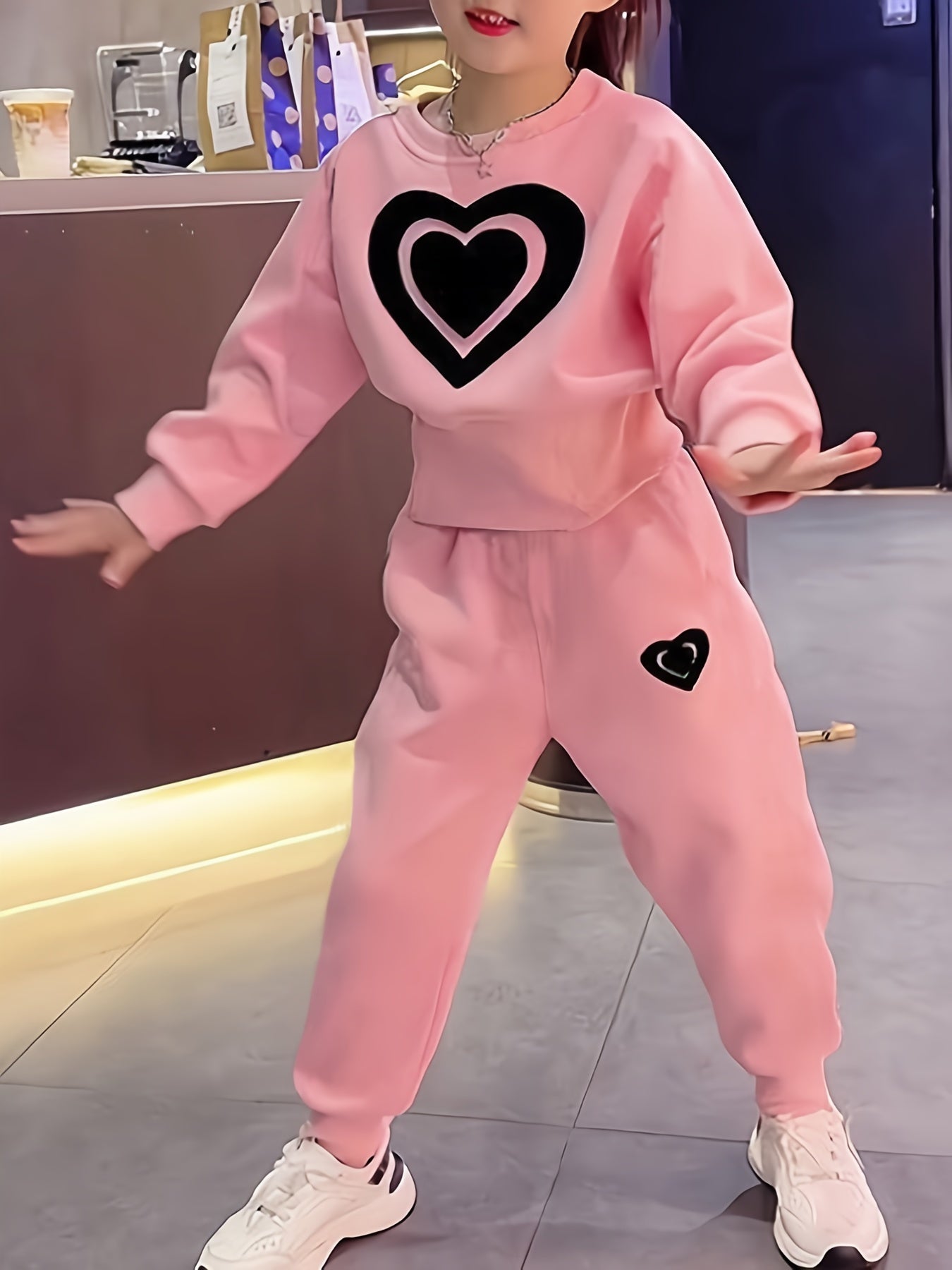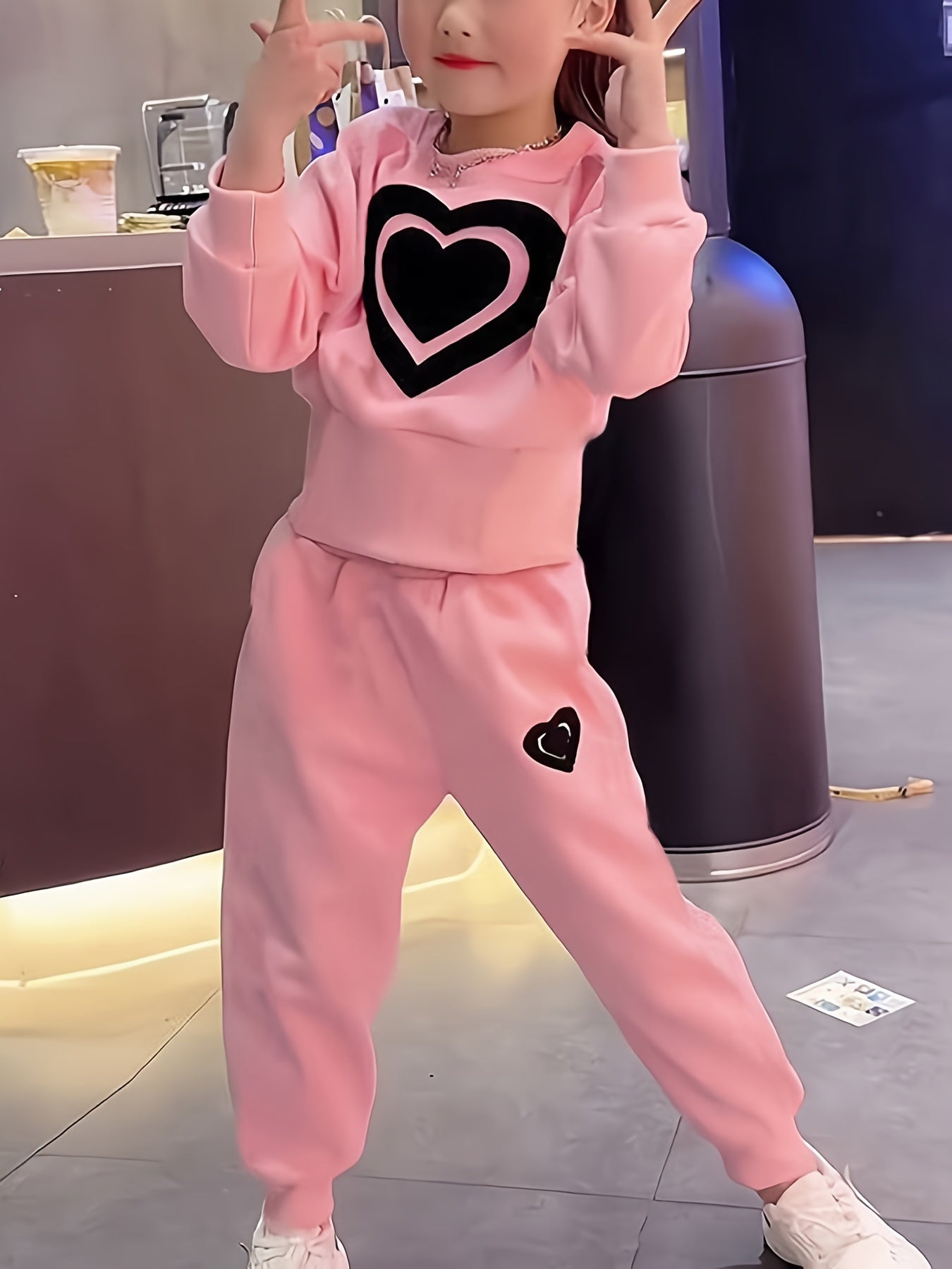 Girls Autumn Clothes 2025 Heart Pattern Knit Two-Piece Set for Kids
