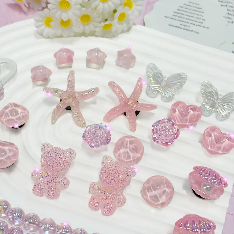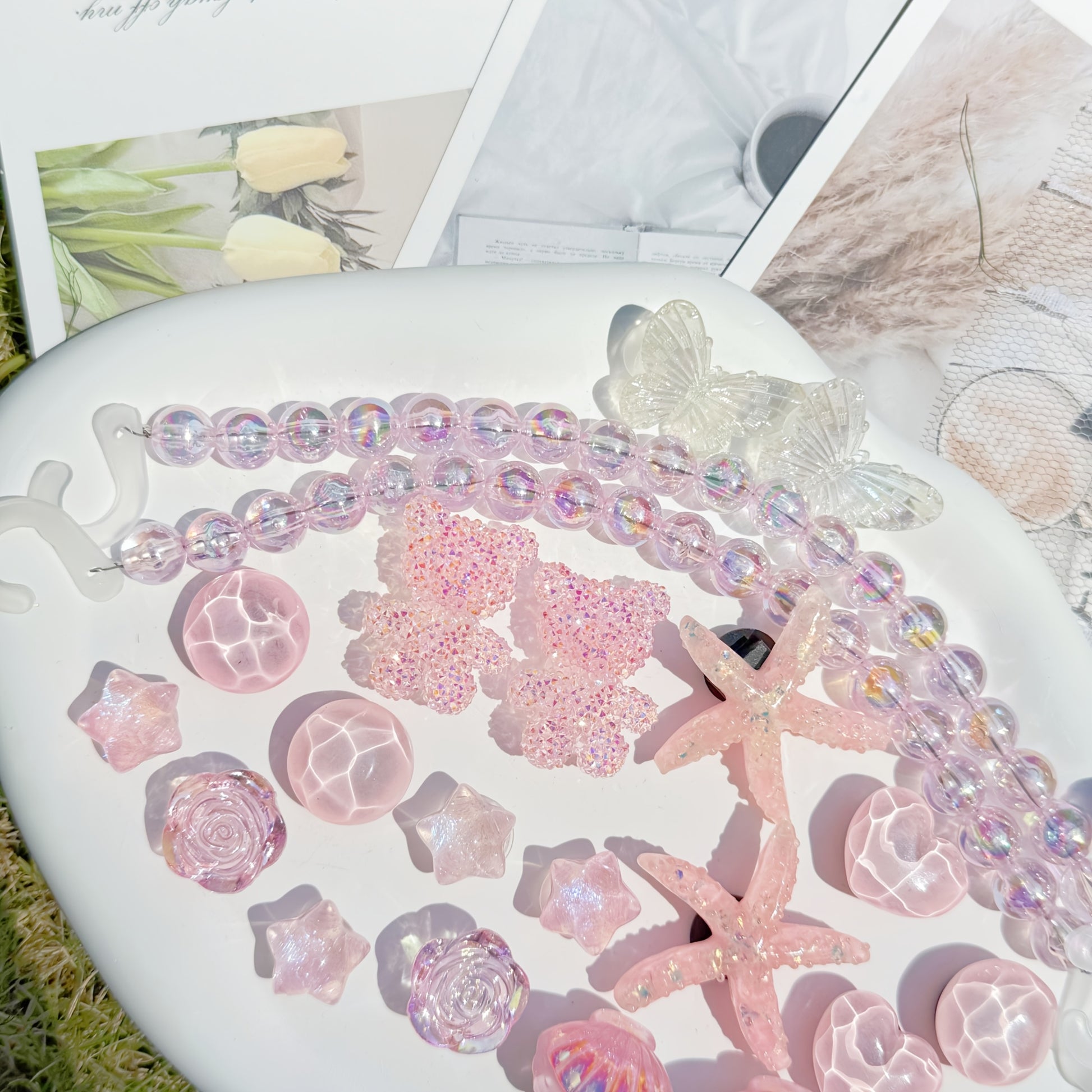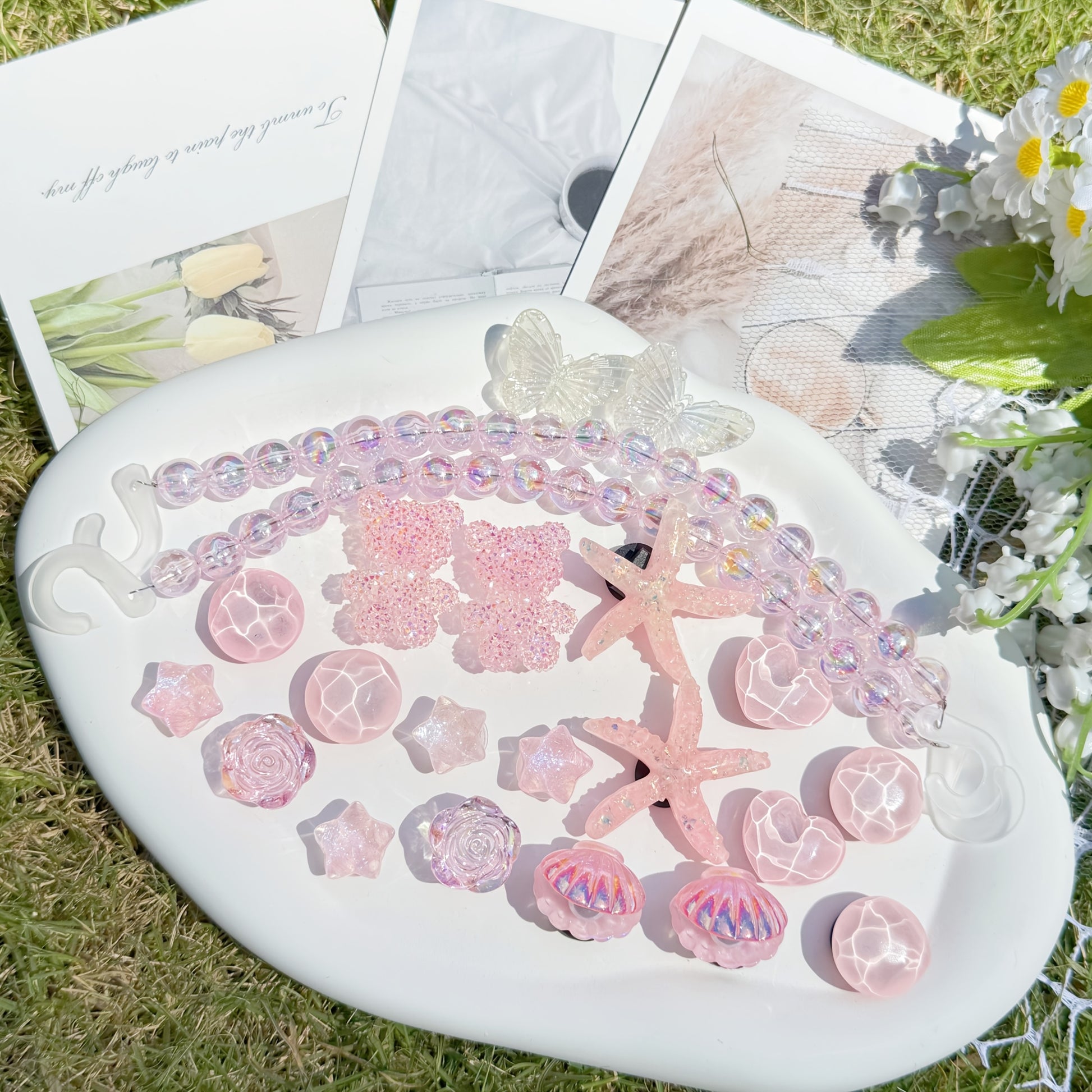 22pcs Pink Chain Bear Shell Starfish Shoe Accessories for Slippers and Beach Shoes