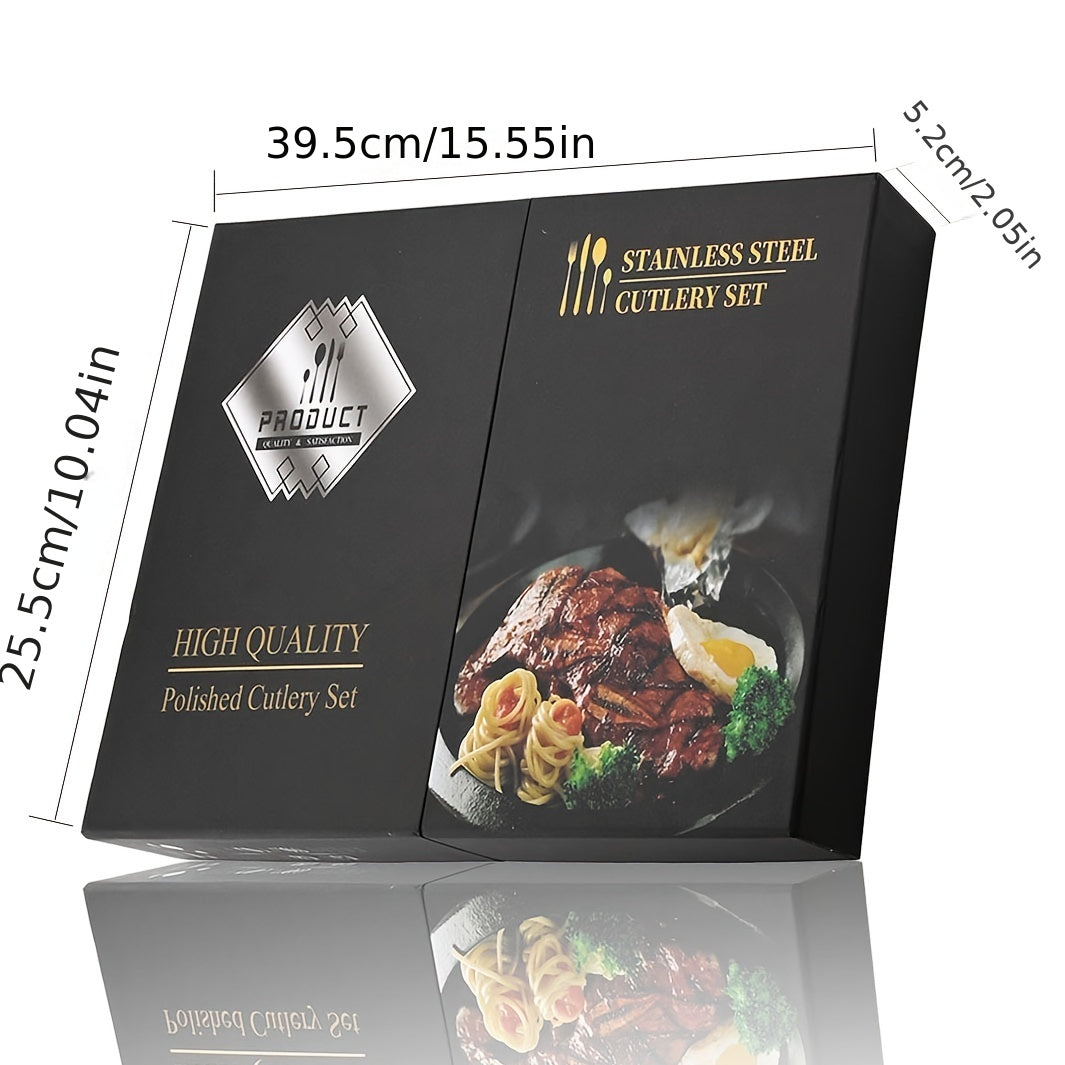 24-Piece Black Handle Gold Stainless Steel Cutlery Set for Kitchen Dining