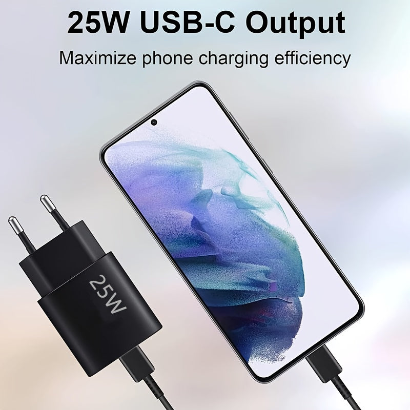 25W USB-C Fast Charger with 100cm Cable for Samsung Galaxy iPhone 15/16 iPad