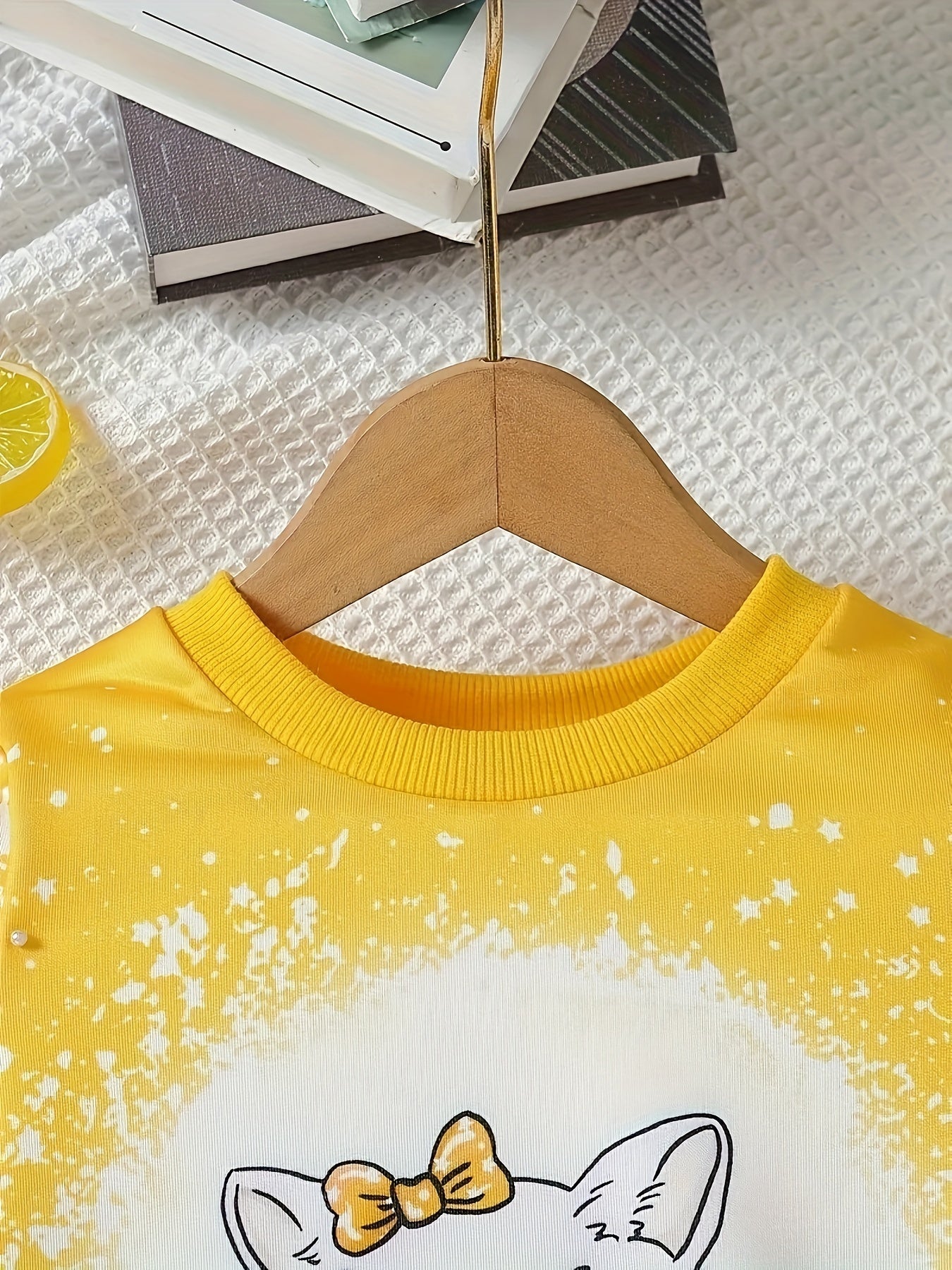 Girls' Sweatshirt and Joggers Set with Cartoon Cat Pattern Polyester Casual All-Season