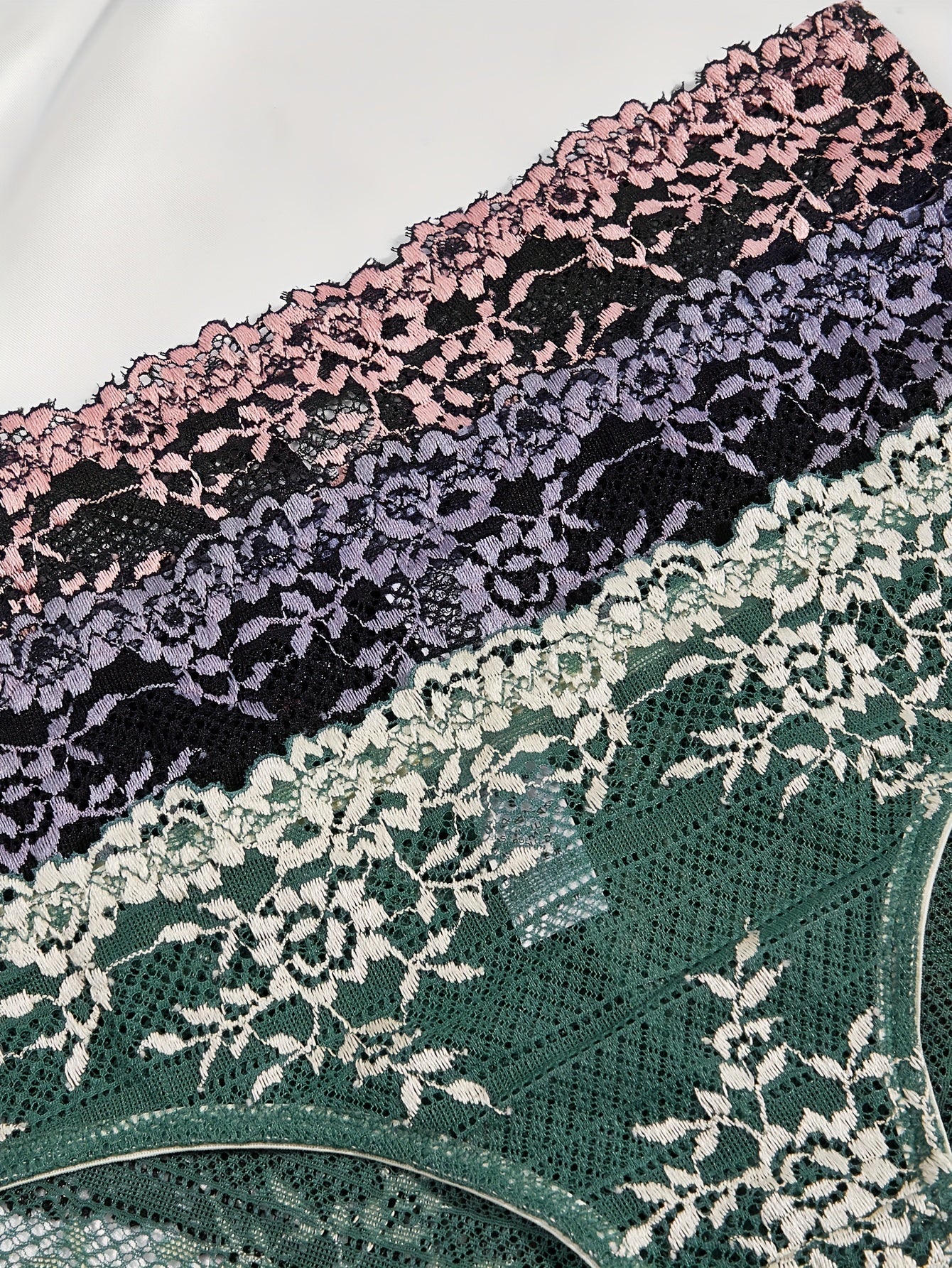 Women’s Lace Briefs 3-Pack Contrast Color Block Breathable Stretchy Underwear