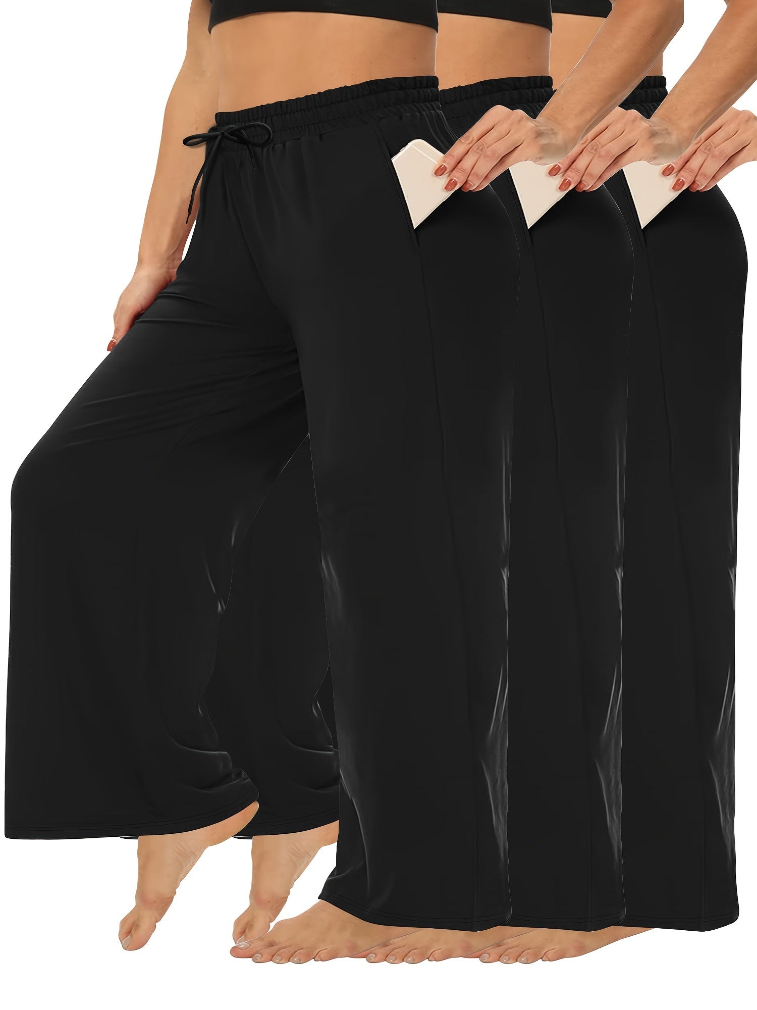 Plus Size High Waist Wide Leg Pants with Pockets and Drawstring in Solid Color 3-Pack