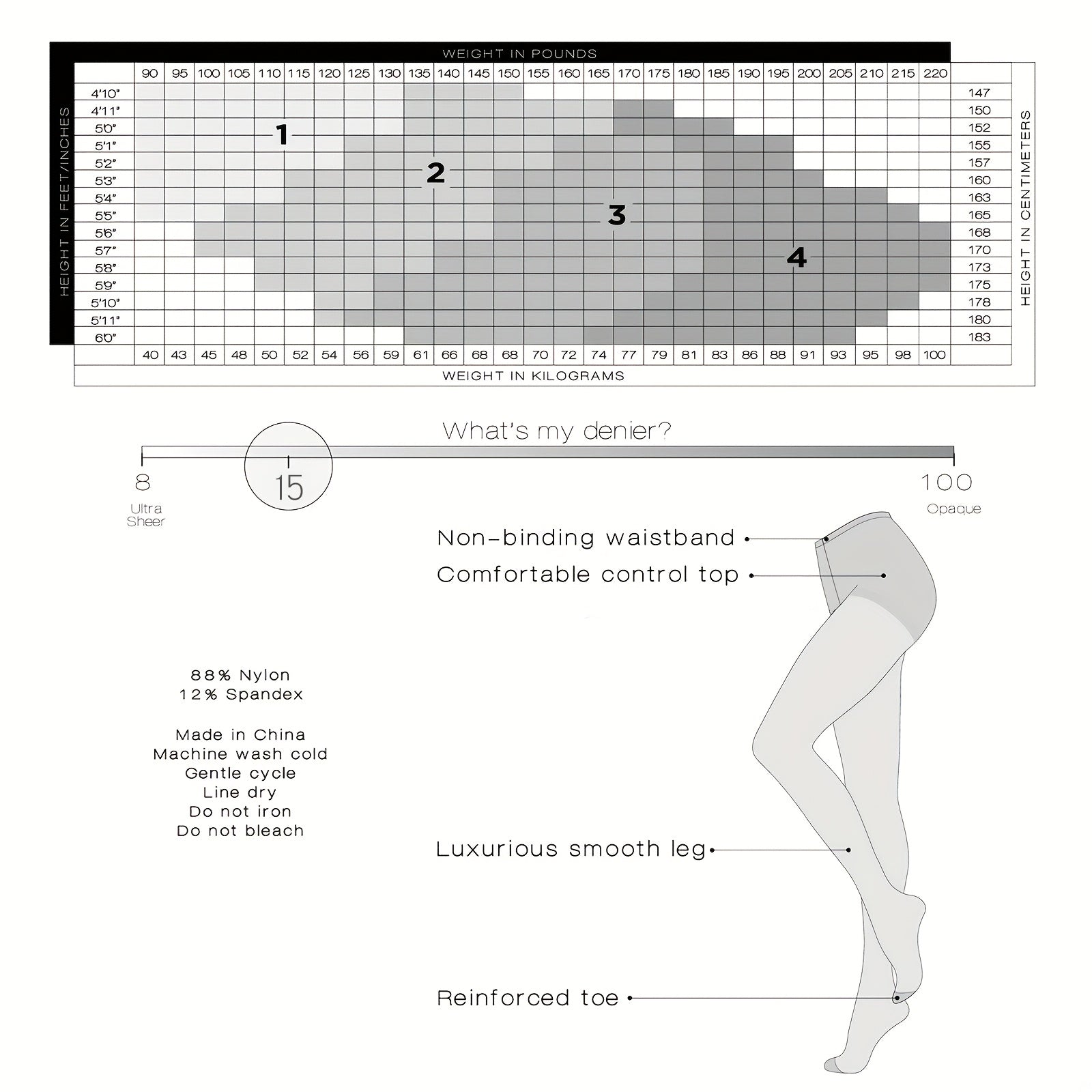 Women's Sheer Control Top Pantyhose 3 Pack High Waist Tummy Control Black Mesh Overlay