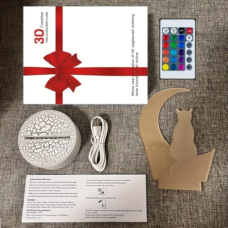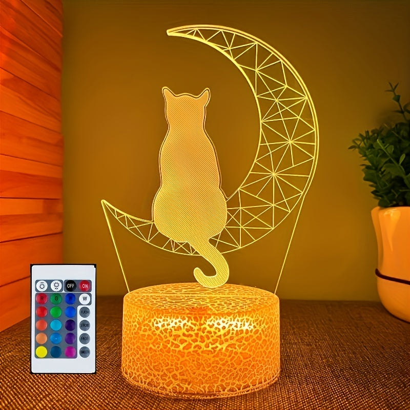 3D Moon Cat LED Night Light with 16 Colors Touch and Remote Control Warm White Base Gift