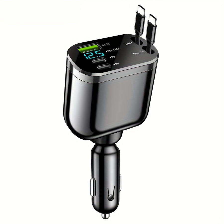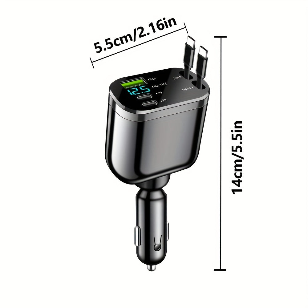 4-in-1 Fast Charging Car Charger with Retractable Cable Dual PD Ports