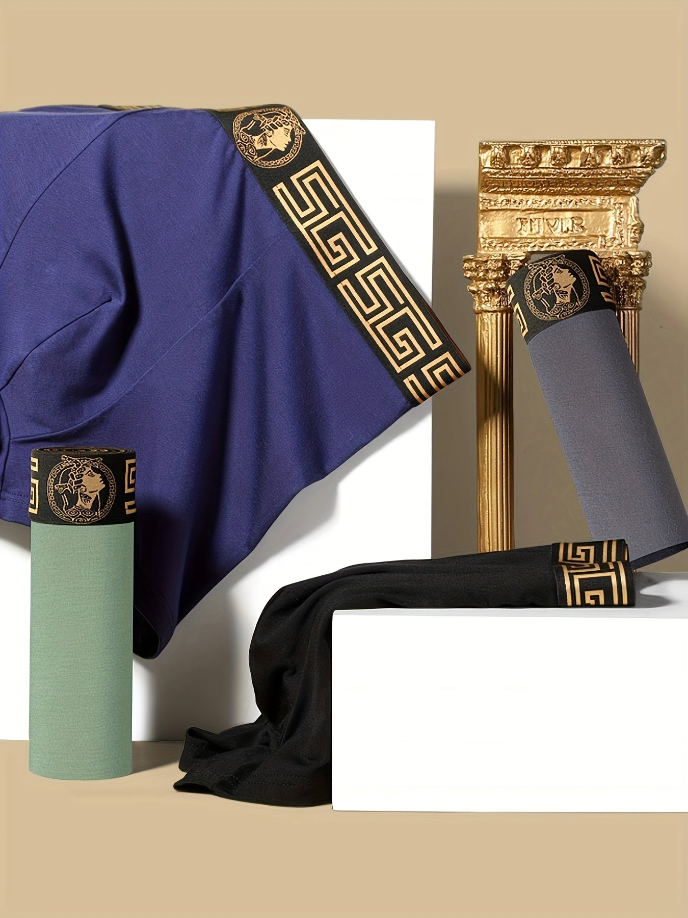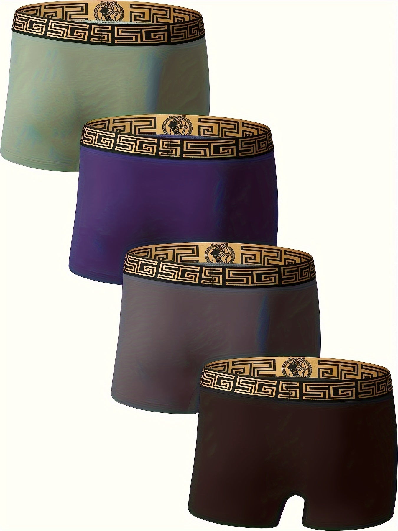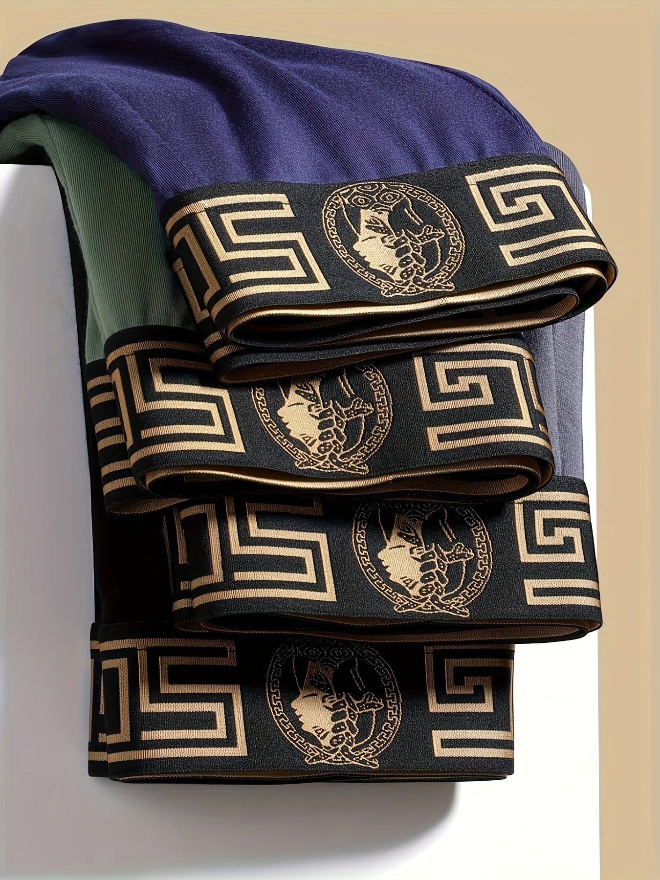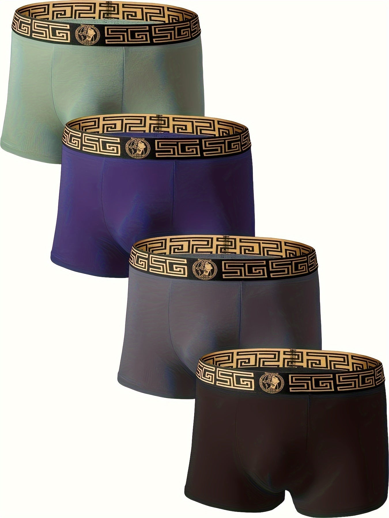 Men's Viscose Boxer Briefs 4-Pack Breathable Medium Stretch Portrait Pattern