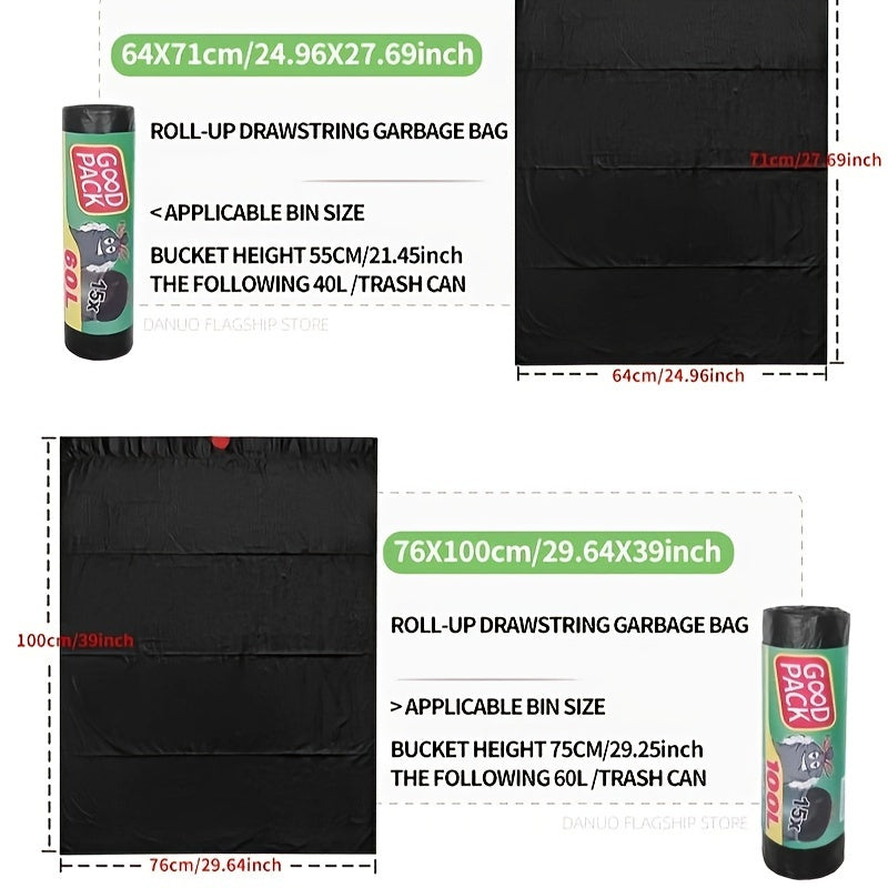 Large Thickened Drawstring Garbage Bags for Kitchen Yard and Barrel 30L 60L 98L