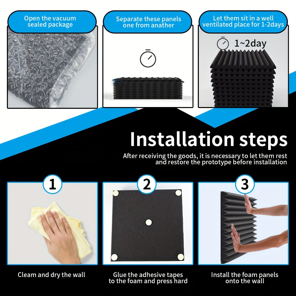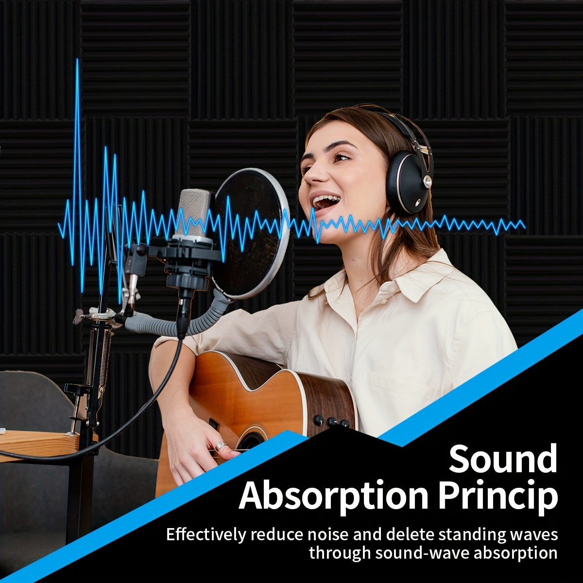 48pcs Acoustic Foam Panels Soundproofing Fire-Resistant Wedges for Studio Bedroom Office Black Gray
