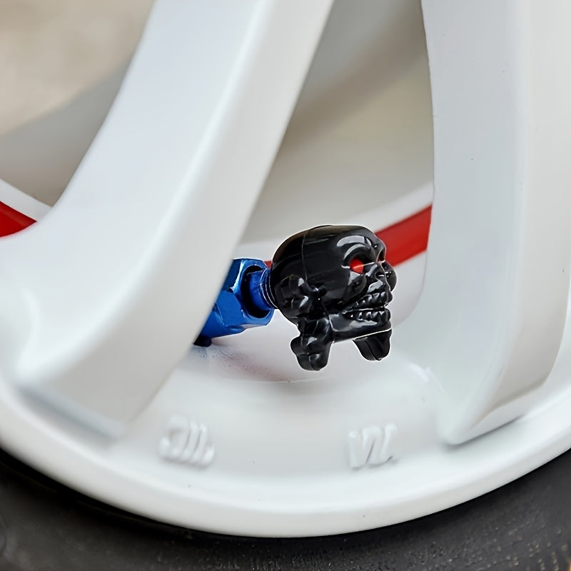 4Pcs Car Tire Valve Stem Caps Skull Style Copper Core Anti-Rust Wheel Accessories